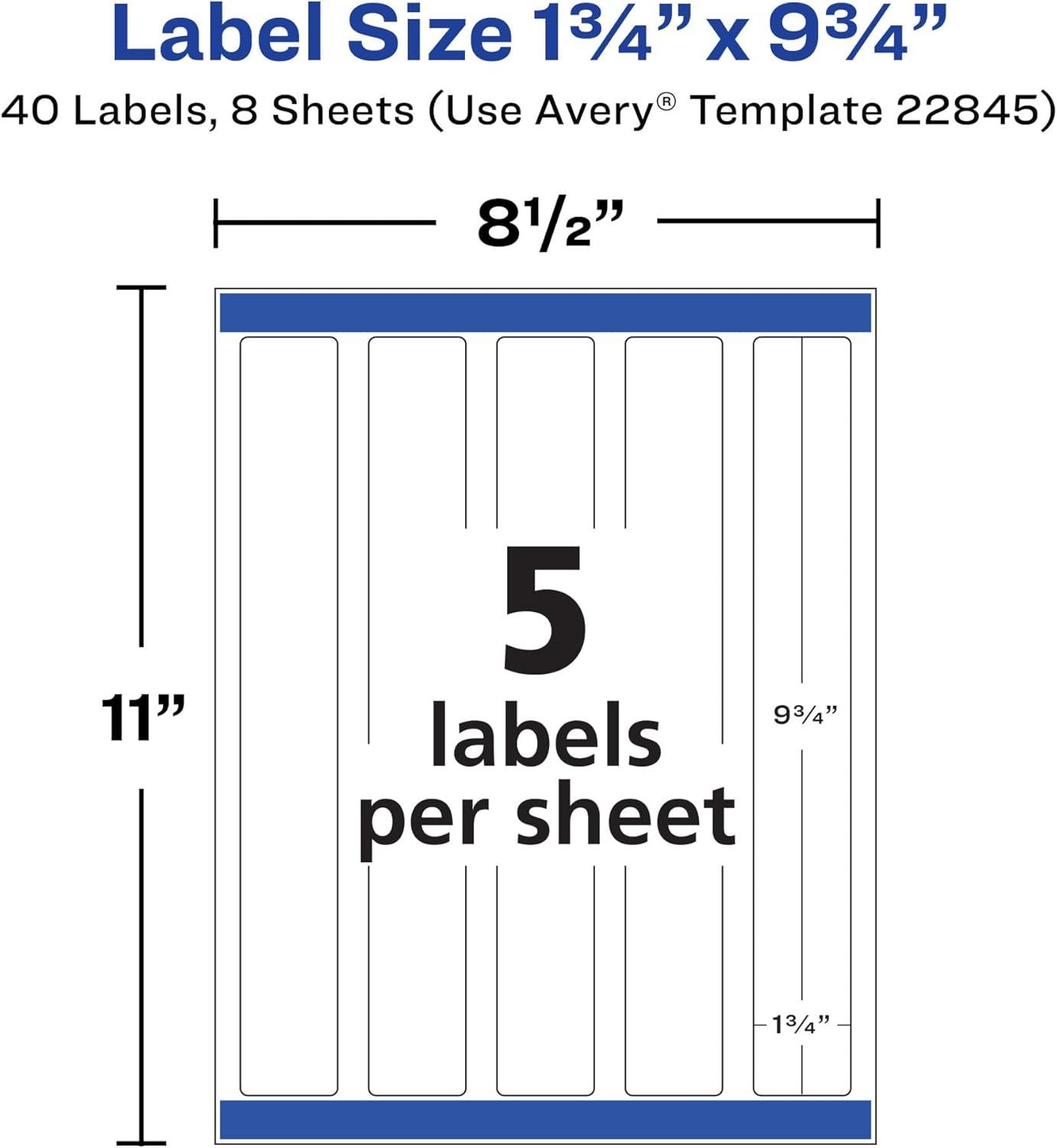 Avery Durable Waterproof Wraparound Rectangle Labels with Sure Feed Technology, 1-1/4" x 9-3/4", Matte White, 40 Customizable Labels for Laser and Pigment-Inkjet Printers (22845)(One Size (Pack of 5))