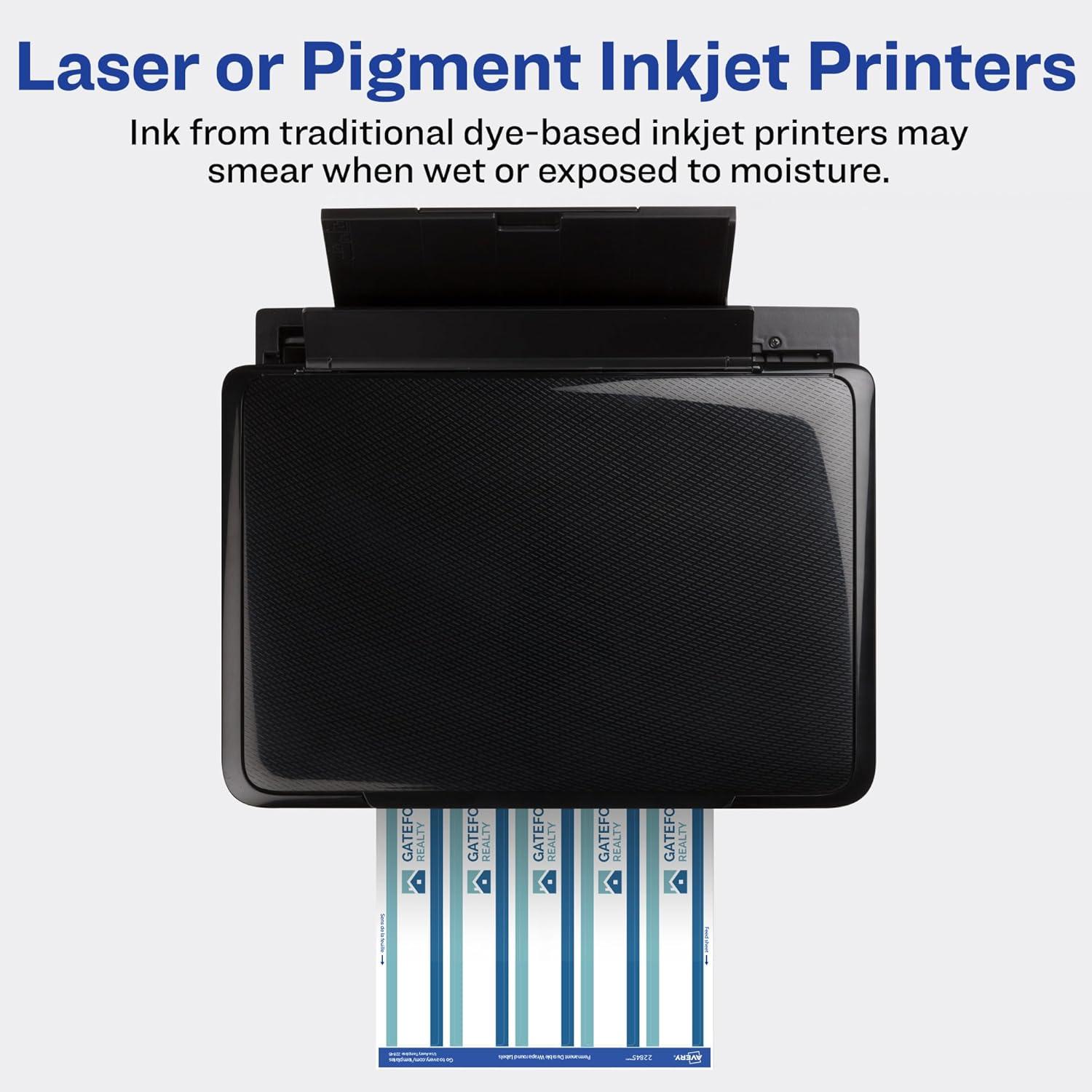 imageAvery Durable Waterproof Wraparound Rectangle Labels with Sure Feed Technology 114quot x 934quot Matte White 40 Customizable Labels for Laser and PigmentInkjet Printers 22845One Size
