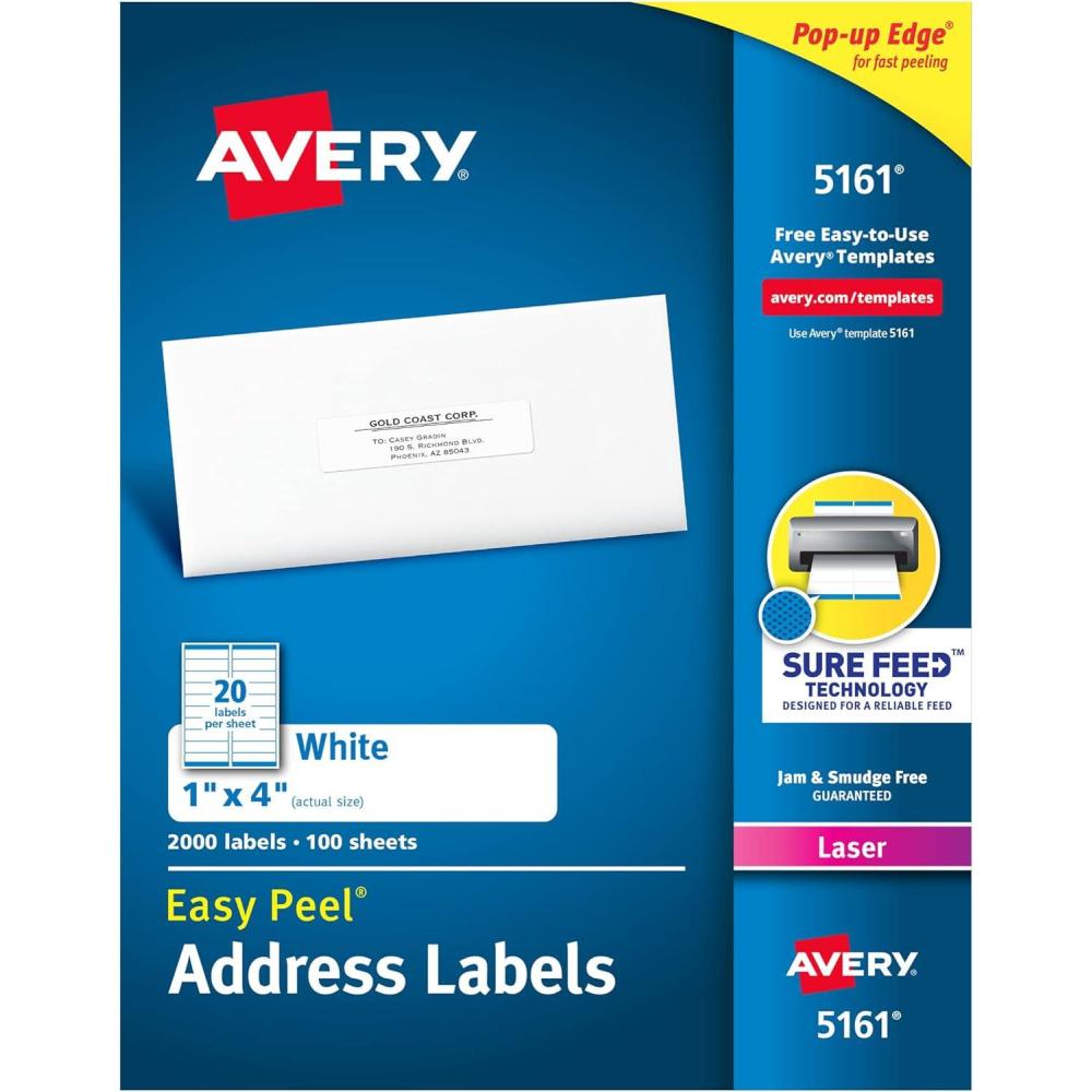 Avery Easy Peel Printable Address Labels with Sure Feed, 1″ x 4″, White, 2,000 Blank Mailing Labels for Laser Printers (5161)(1 x 4)