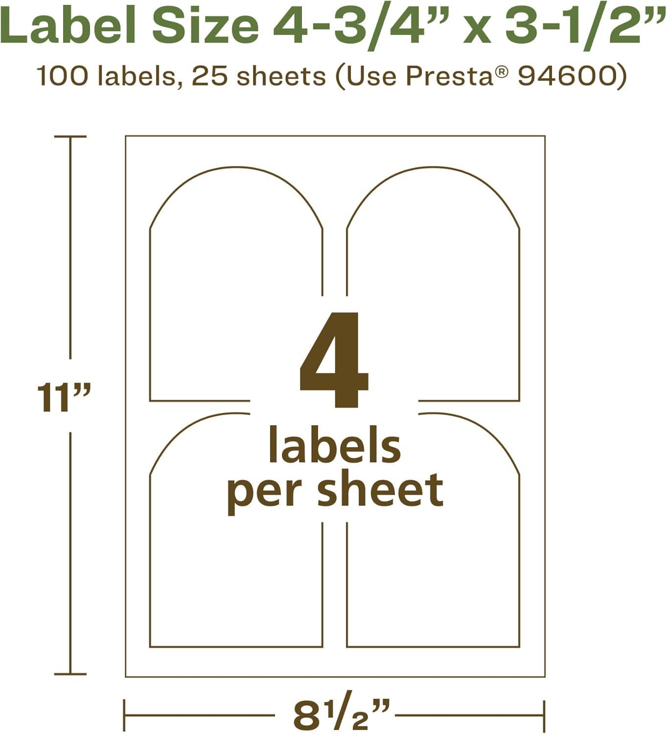 Avery EcoFriendly Matte White Recycled Arched Labels, 4.75″ x 3.5″, Print-to-The-Edge, Matte White Labels, Permanent Adhesive, Laser/Inkjet Printable, 100 Total(200 labels)