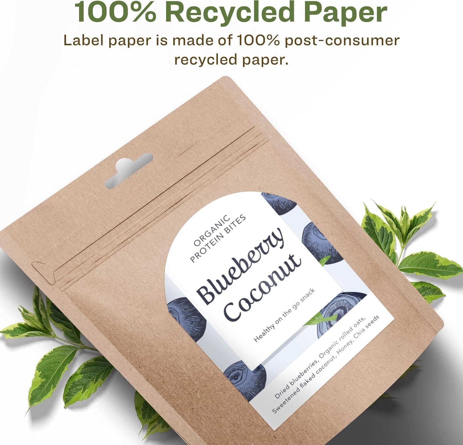 These recycled paper labels are created with 100% post-consumer recycled paper
