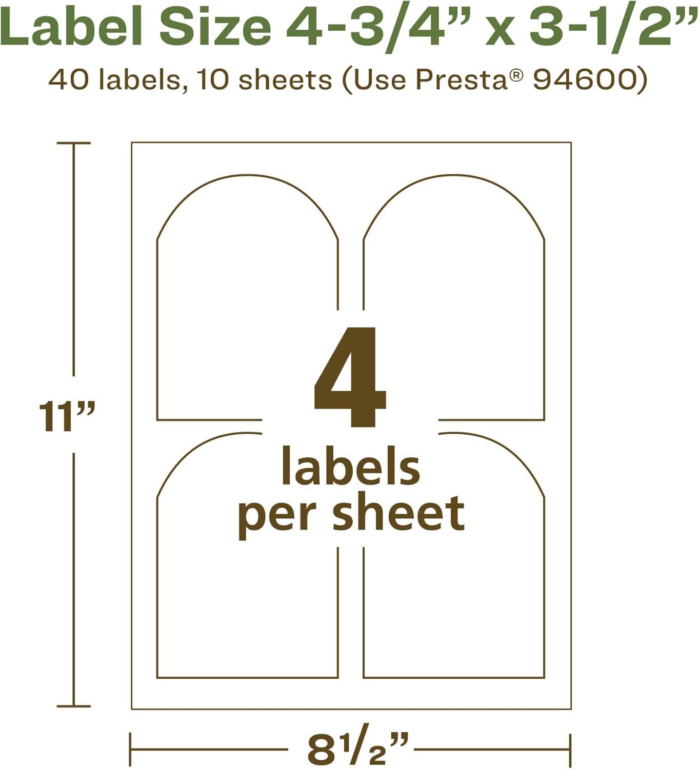 Avery EcoFriendly Matte White Recycled Arched Labels, 4.75″ x 3.5″, Print-to-The-Edge, Matte White Labels, Permanent Adhesive, Laser/Inkjet Printable, 100 Total(40 labels)