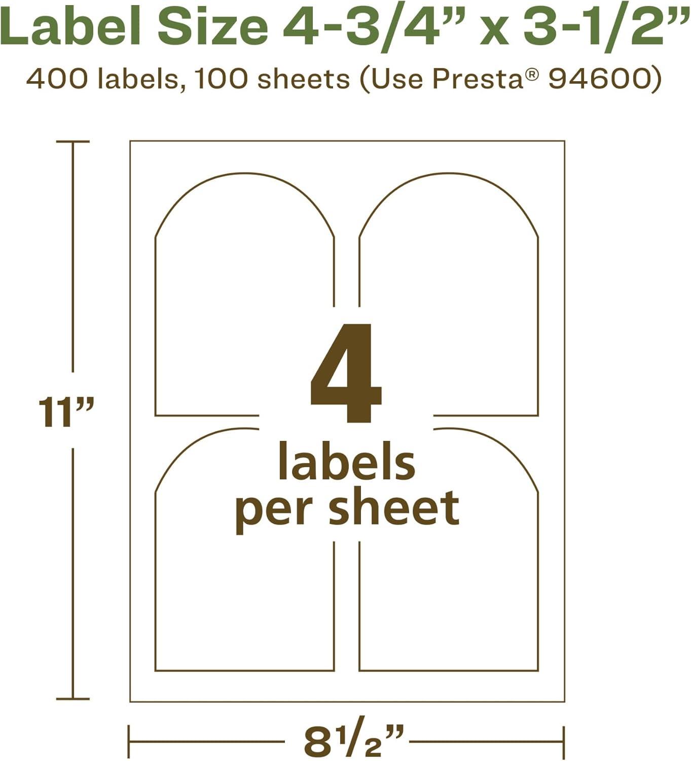 Avery EcoFriendly Matte White Recycled Arched Labels, 4.75″ x 3.5″, Print-to-The-Edge, Matte White Labels, Permanent Adhesive, Laser/Inkjet Printable, 100 Total(400 labels)