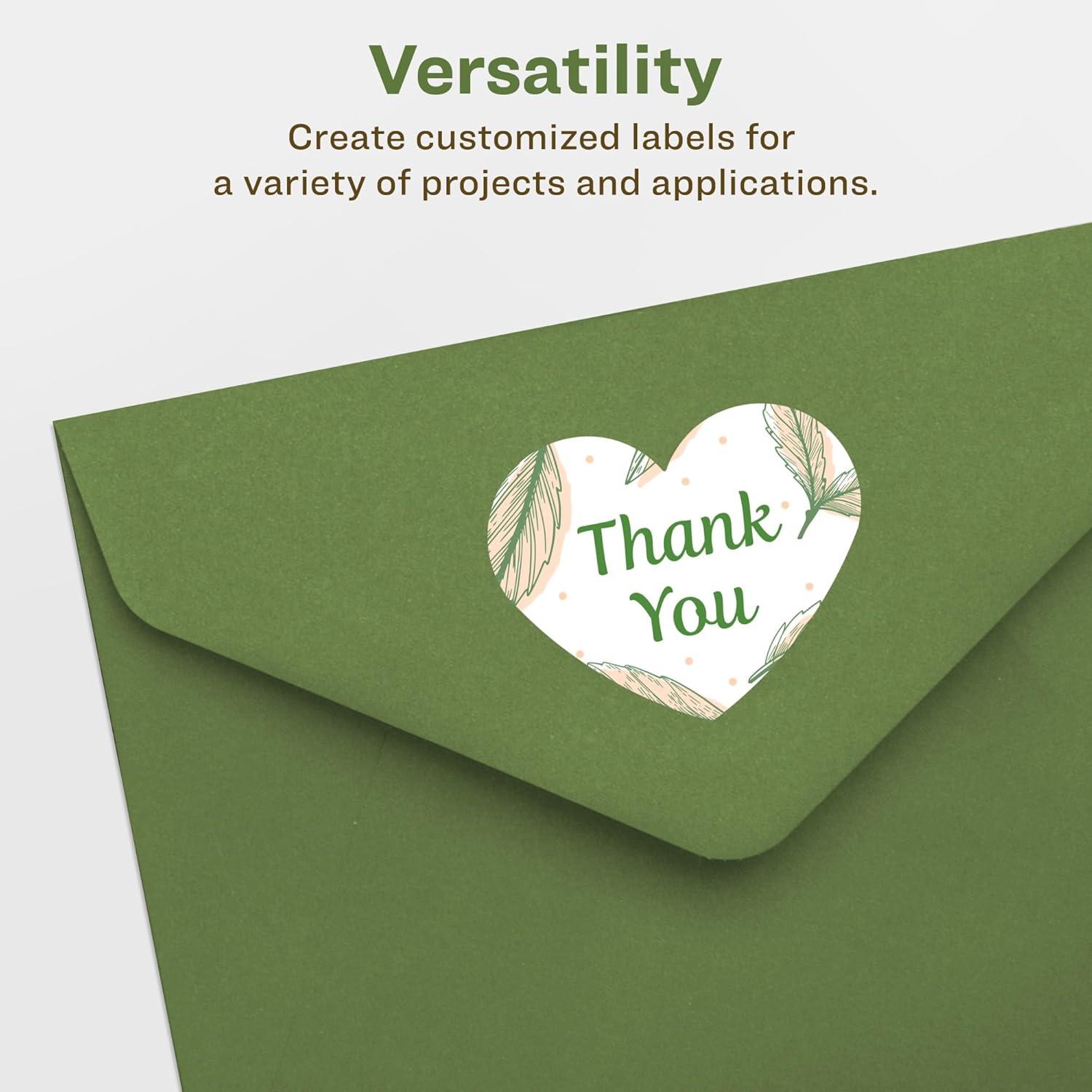 Stay environmentally conscious with Avery EcoFriendly Recycled Heart Labels. These recycled products are made from 100% post-consumer recycled paper. The label paper is also sourced responsibly to ensure the responsible use of resources from the world's forests. The paper is processed chlorine-free so that the number of harmful substances associated with the manufacturing process are substantially reduced. The label sheets are printed with soy-based inks that are derived from renewable materials. Avery EcoFriendly recycled stickers and labels are curbside recyclable with paper waste and use a recycling-compatible adhesive that won't interfere with the recycling process when adhered onto a paper substrate. The packaging is also recyclable and can be disposed of with paper waste. The print-to-the-edge layout lets you print all the way to the edge of the card. Personalize your own designs with the templates available on the Avery site and print with a laser or inkjet printer. Whether you're creating labels for the office, school, or home, Avery makes it easy to bring your designs to life. Please Note: The backing sheets of the labels are not recyclable and should be disposed of separately.