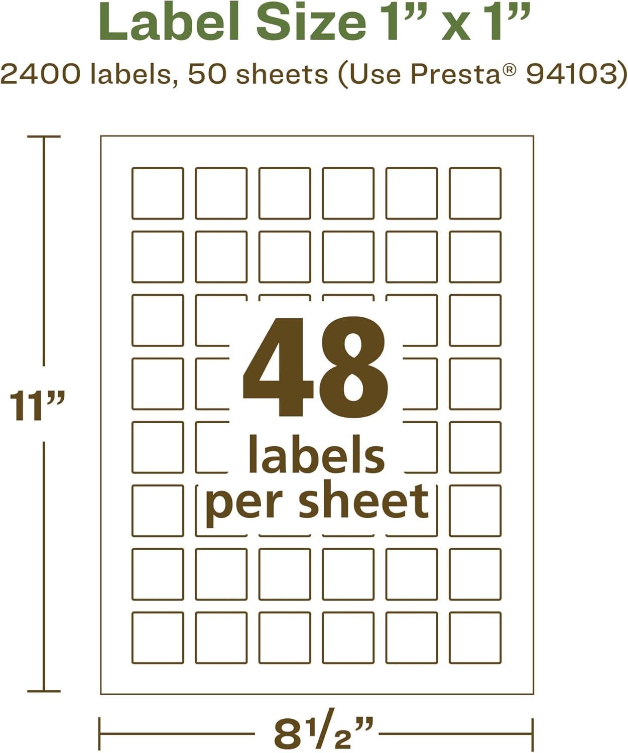 Avery EcoFriendly Matte White Recycled Square Labels, 1″ x 1″, Print-to-The-Edge, Matte White Labels, Permanent Adhesive, Laser/Inkjet Printable, 1,200 Total(2 400 labels)