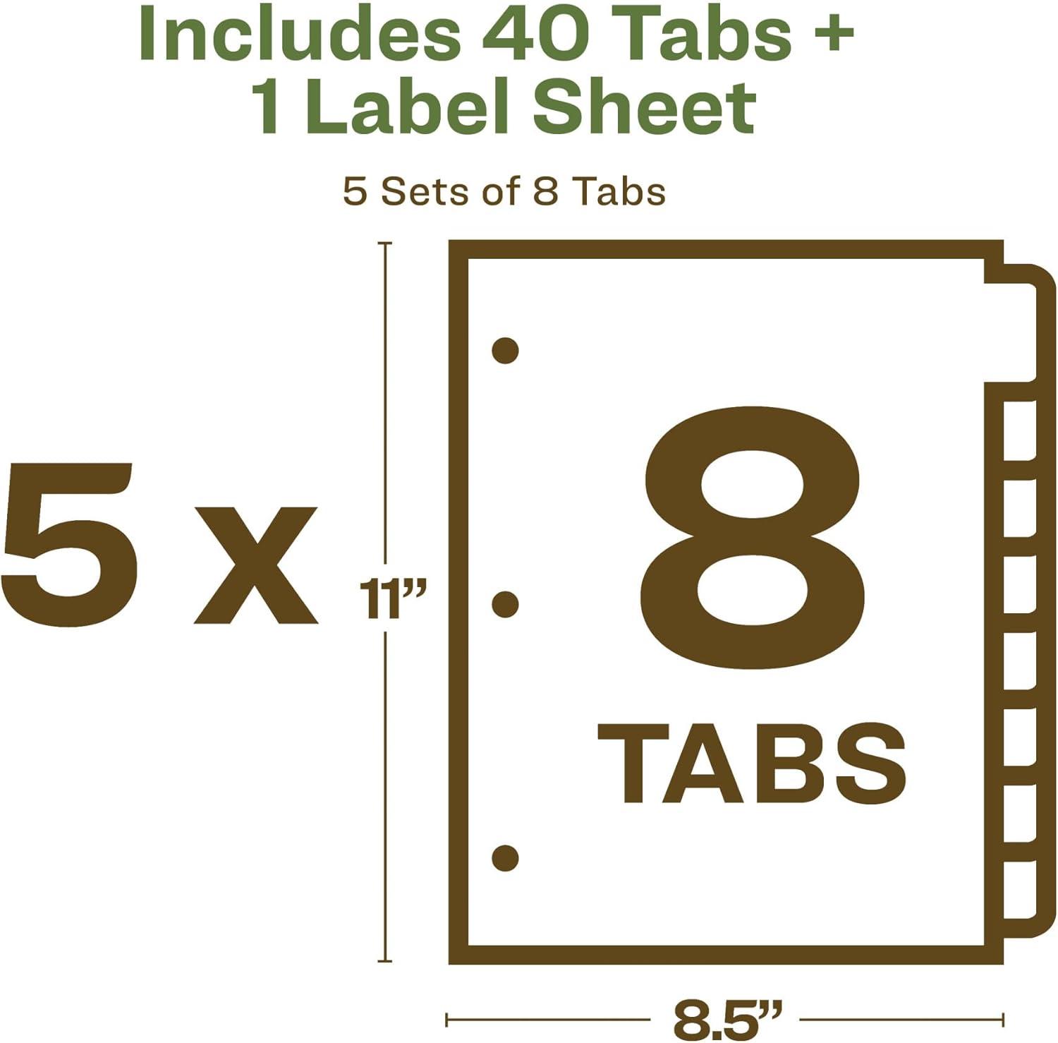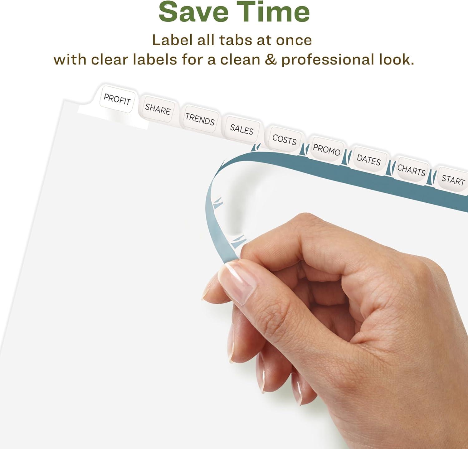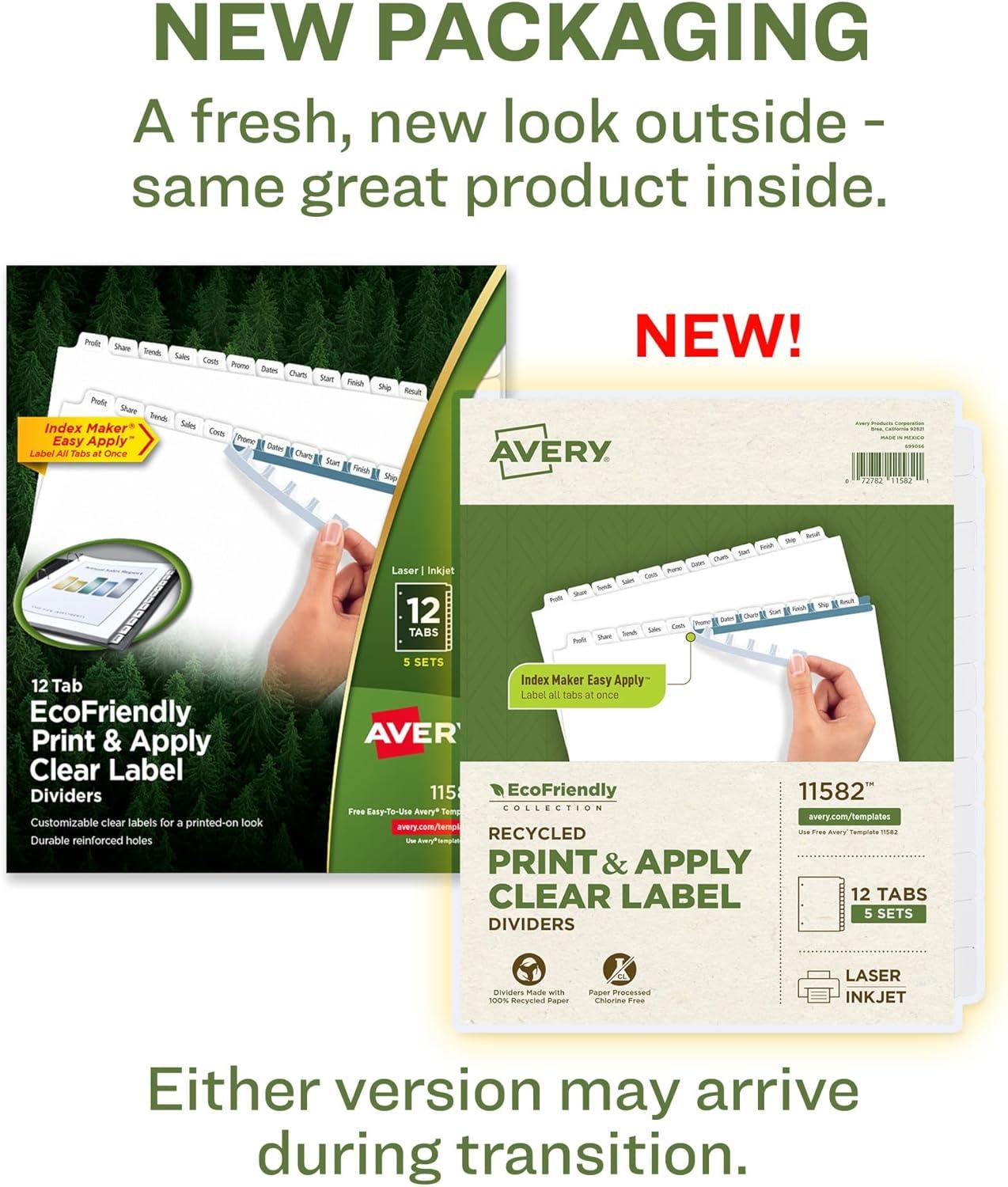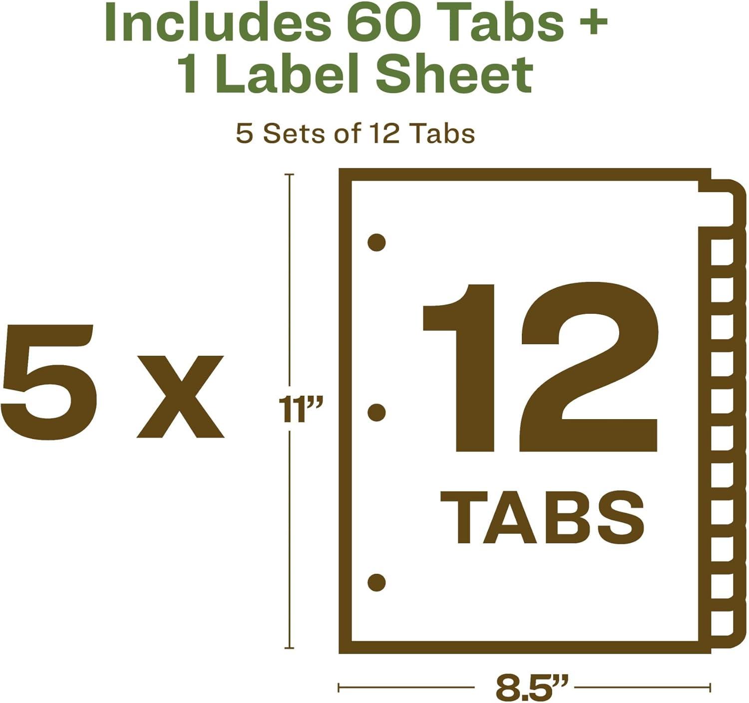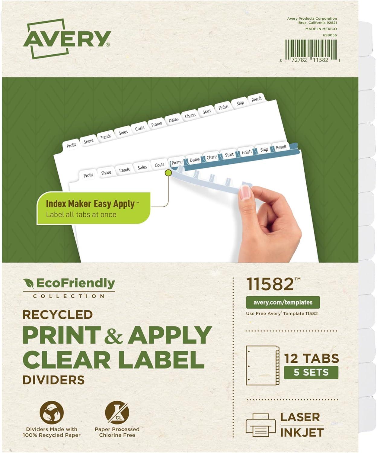 Avery EcoFriendly Recycled Dividers for 3 Ring Binders, 12-Tab, White Tabs, Index Maker Print and Apply Clear Label Strip, 5 Sets for 60 Binder Dividers Total (11582)(One Size)