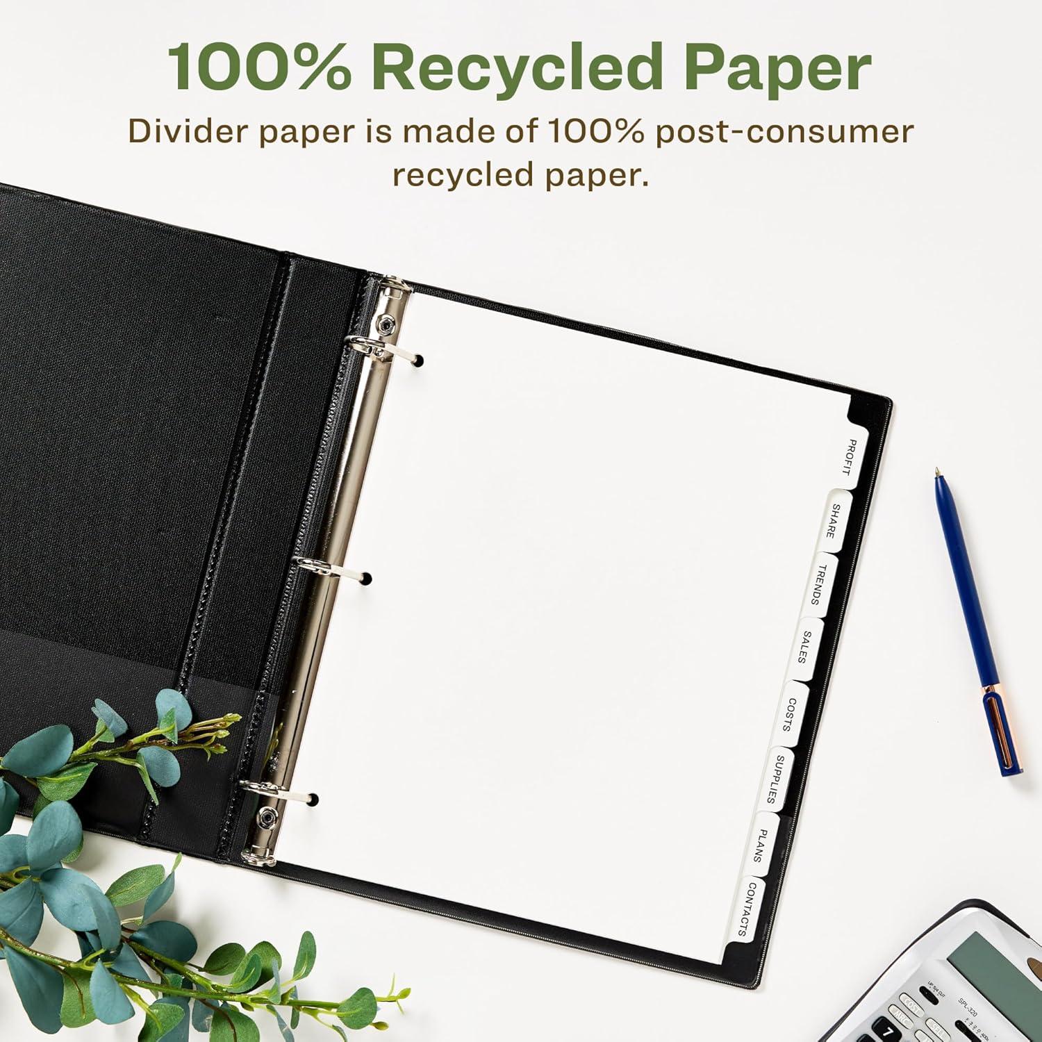 Avery EcoFriendly Recycled Dividers for 3 Ring Binders, 12 Tabs per Set, Customizable Table of Contents, Multicolor Tabs, Great for Organizing Reports, Projects, and More (3 Sets of 11083)(1 Set)