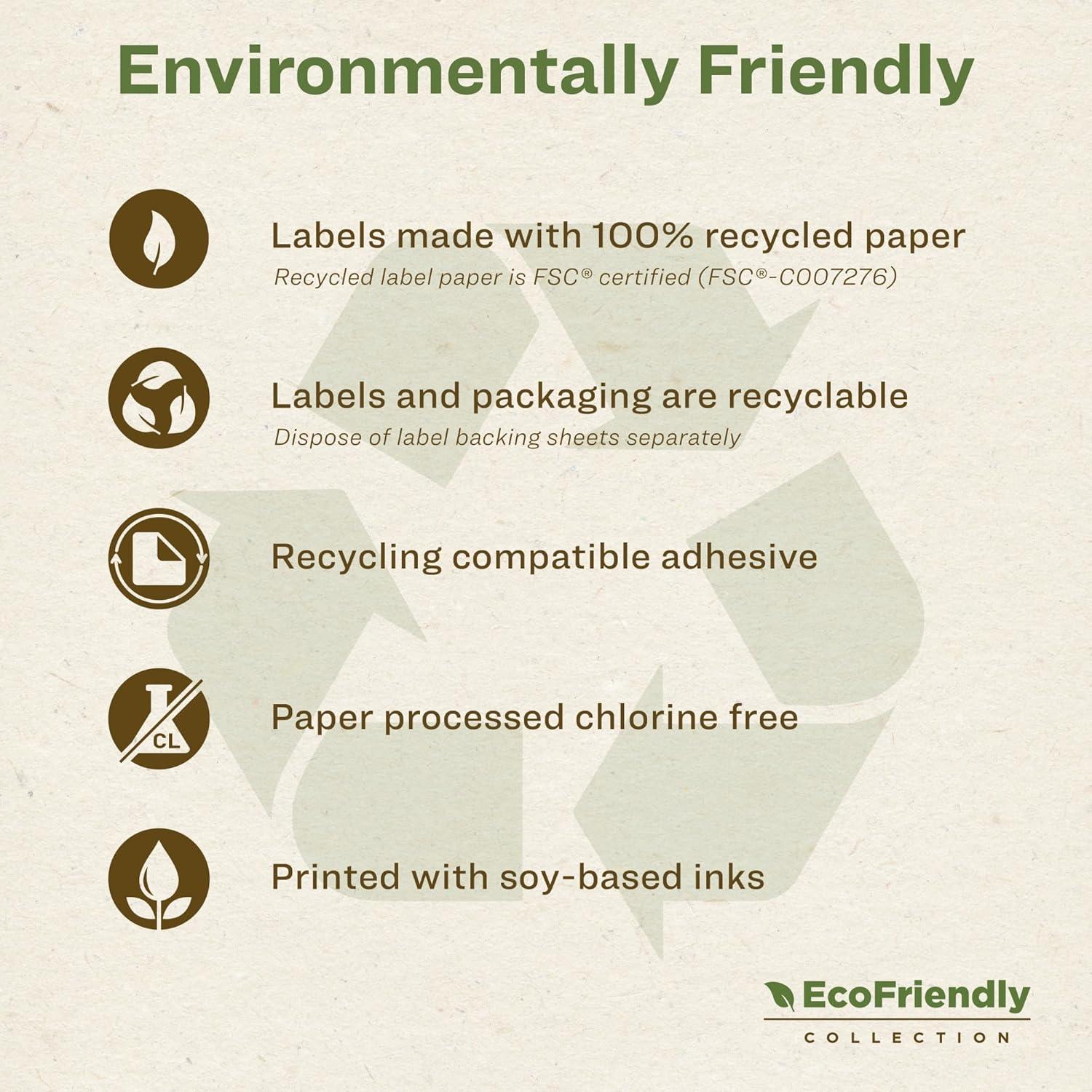 The labels and packaging are curbside recyclable and labels use a recycling-compatible adhesive which does not interfere with the recycling process when adhered onto a paper substrate (dispose of backing sheets separately)