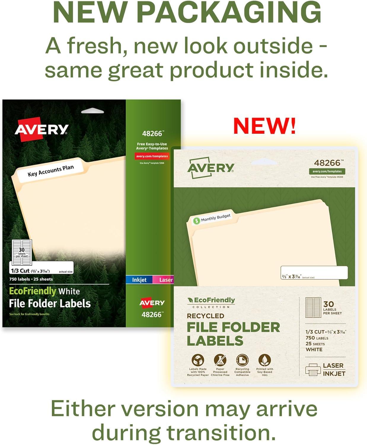 Avery EcoFriendly Recycled File Folder Labels, 2/3" x 3-7/16", White, Permanent Label Adhesive, 750 Printable Labels (48266)(2/3 in x 3-7/16 in)