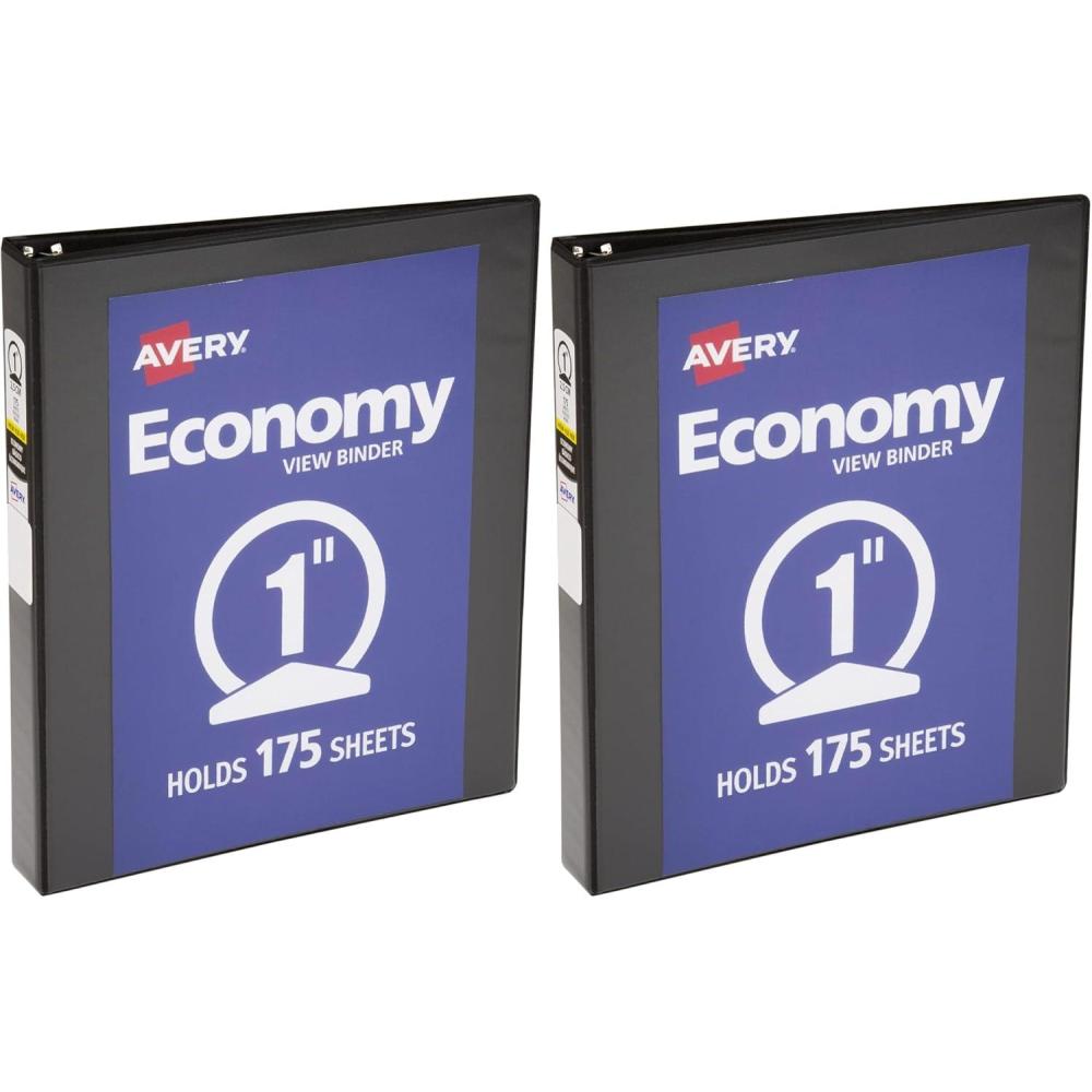 Avery Economy View 3 Ring Binder, 1" Round Rings, 1 Black Binder (05761)(1 Count (Pack of 2))