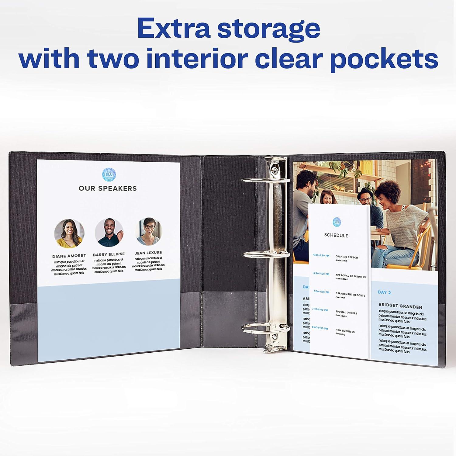 Discover sturdy simplicity in a convenient and lightweight package. This Economy View Binder offers a handy solution to your organization needs. Open and close the rings with ease to add or remove papers as needed. Metal round rings mounted on the spine hold pages securely. Tuck important handouts, pamphlets and other loose or unpunched paperwork into the two interior pockets for quick access. Each pocket holds up to 20 sheets. Put your personal stamp on the binder by designing a customized cover and slipping it into the overlays on the front, spine and back. You can find inspiration in the free, easy-to-use templates available online. Binder also features vinyl construction, a sturdy chipboard core and exposed rivets.