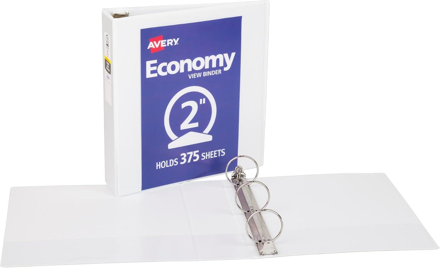 Avery Economy View 3 Ring Binder, 2" Round Rings, 1 White Binder (05780)(1 Count (Pack of 1))