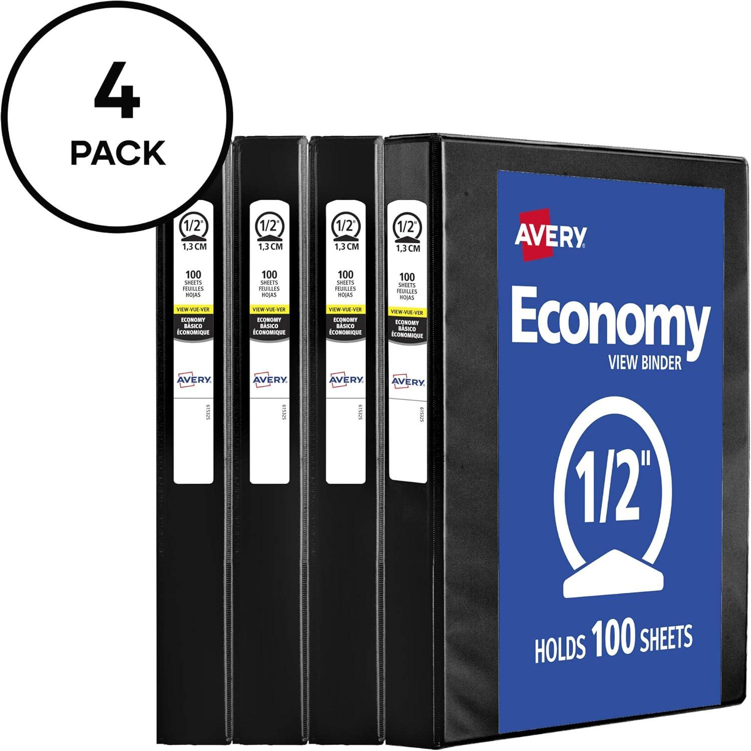 Avery Economy View 3 Ring Binders, Homeschool Supplies, Home Organization, 1" Round Rings, 4 Black Binders (05710)(0.5" (Pack of 3))