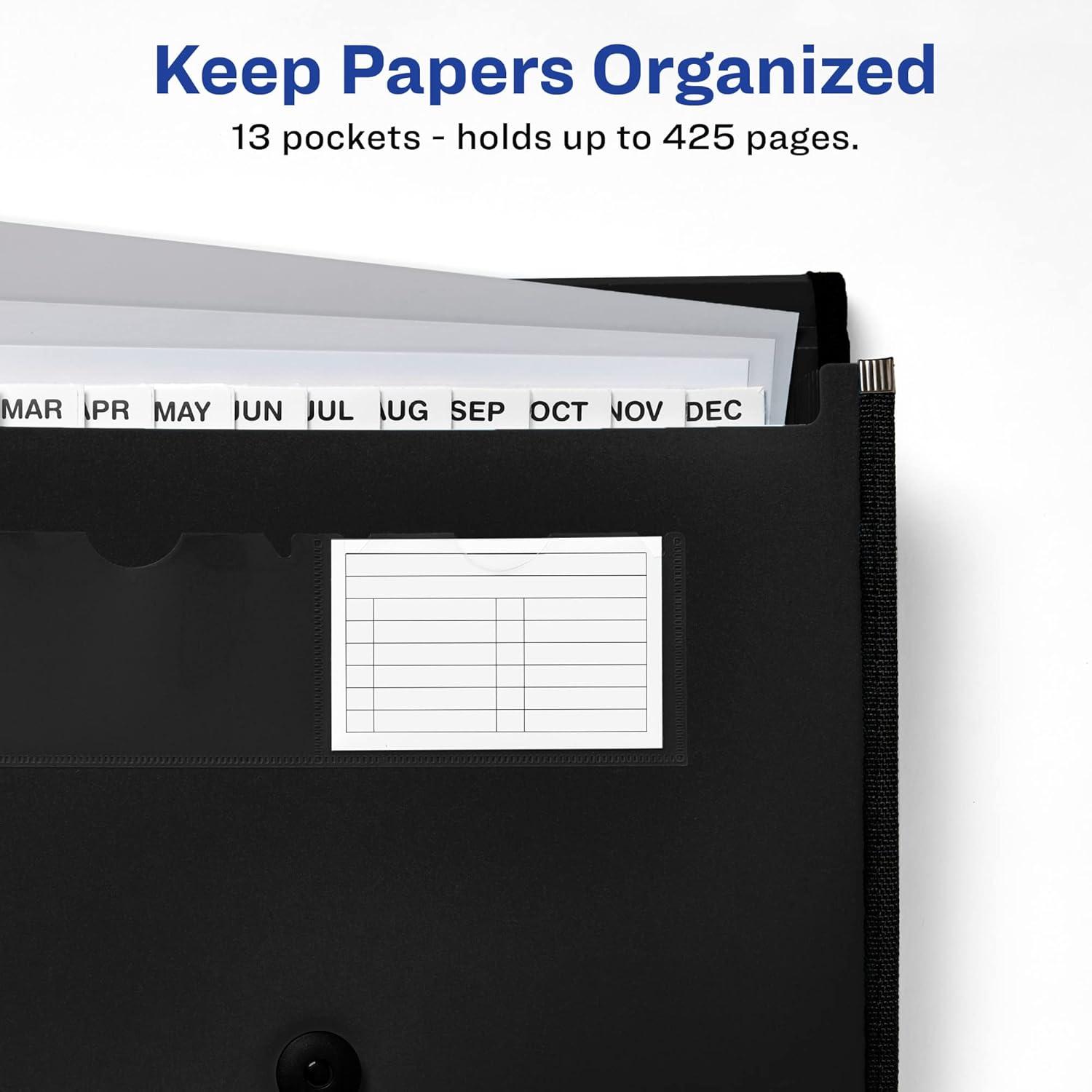 Avery Expanding File Folder Organizer, 13-Pocket Accordion File Organizer, Black, Holds 425 Letter/A4-Size Sheets (73553)(Black)