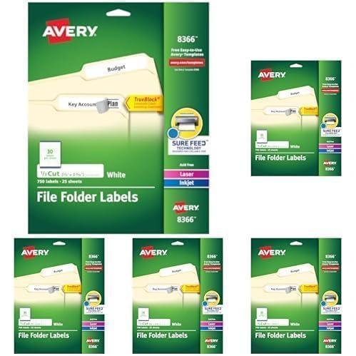 Avery File Folder Labels with TrueBlock Technology, Permanent Adhesive, 2/3" x 3-7/16", Laser/Inkjet, 750 Labels (08366)(2/3 in. X 3-7/16 in. (Pack of 5))
