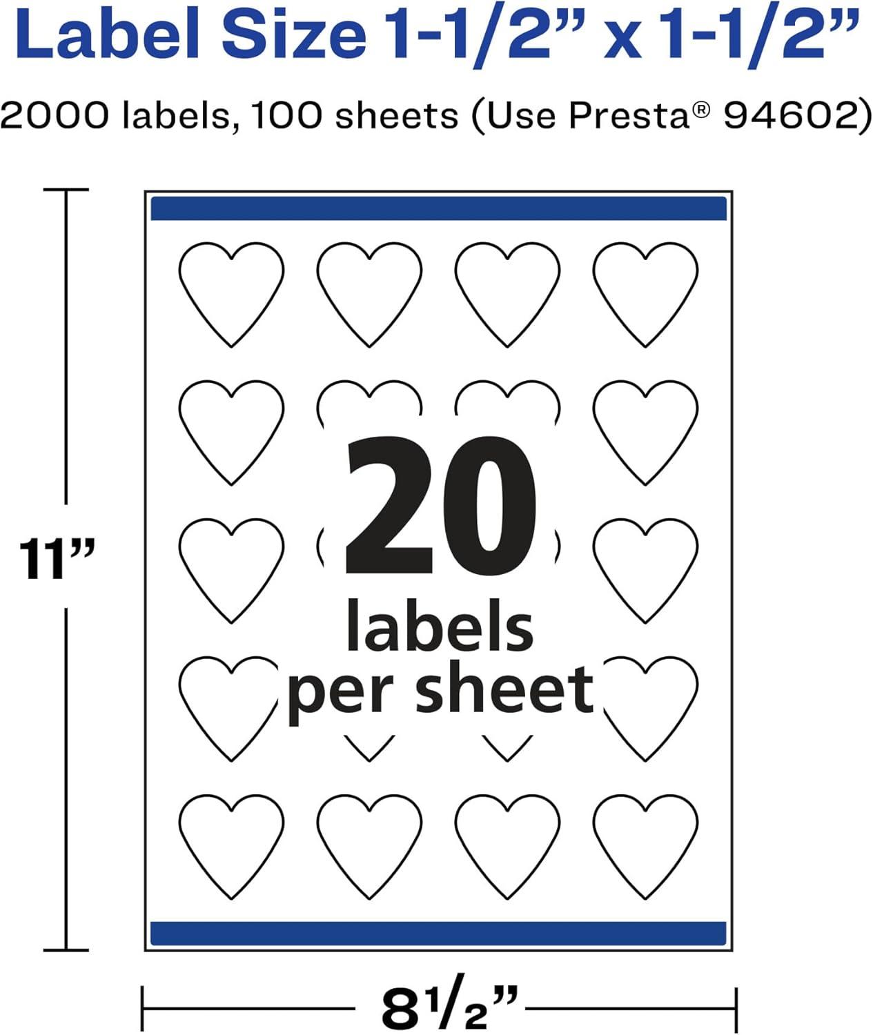 Avery Glossy Clear Heart Labels, Sure Feed Technology, 1.5″ x 1.5″, 200 Glossy Clear Labels, Print-to-The-Edge, Laser/Inkjet Printable(2 000 labels)