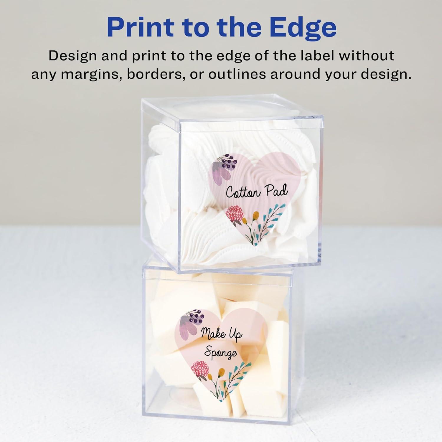 Avery Glossy Clear Heart Labels, Sure Feed Technology, 1.5″ x 1.5″, 200 Glossy Clear Labels, Print-to-The-Edge, Laser/Inkjet Printable(1 000 labels)