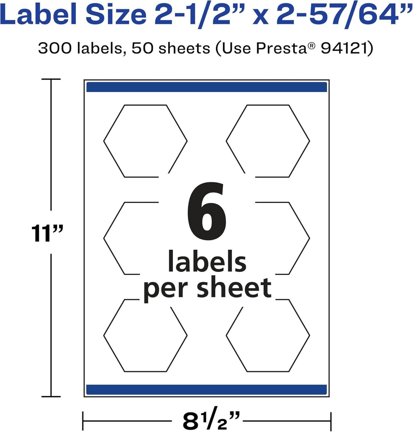 Avery Glossy Clear Hexagon Labels, Sure Feed Technology, 2-1/2″ x 2-57/64″, 60 Glossy Clear Labels, Print-to-The-Edge, Laser/Inkjet Printable(150 labels)