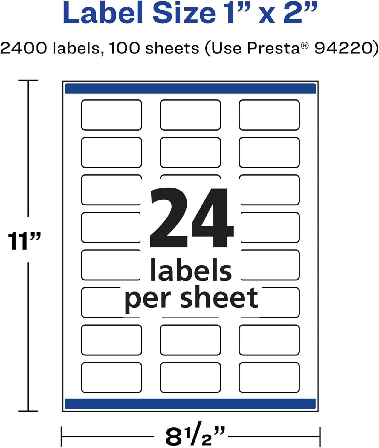 Avery Glossy Clear Rectangle Labels, Sure Feed Technology, 1″ x 2″, 240 Glossy Clear Labels, Print-to-The-Edge, Laser/Inkjet Printable(2 400 labels)