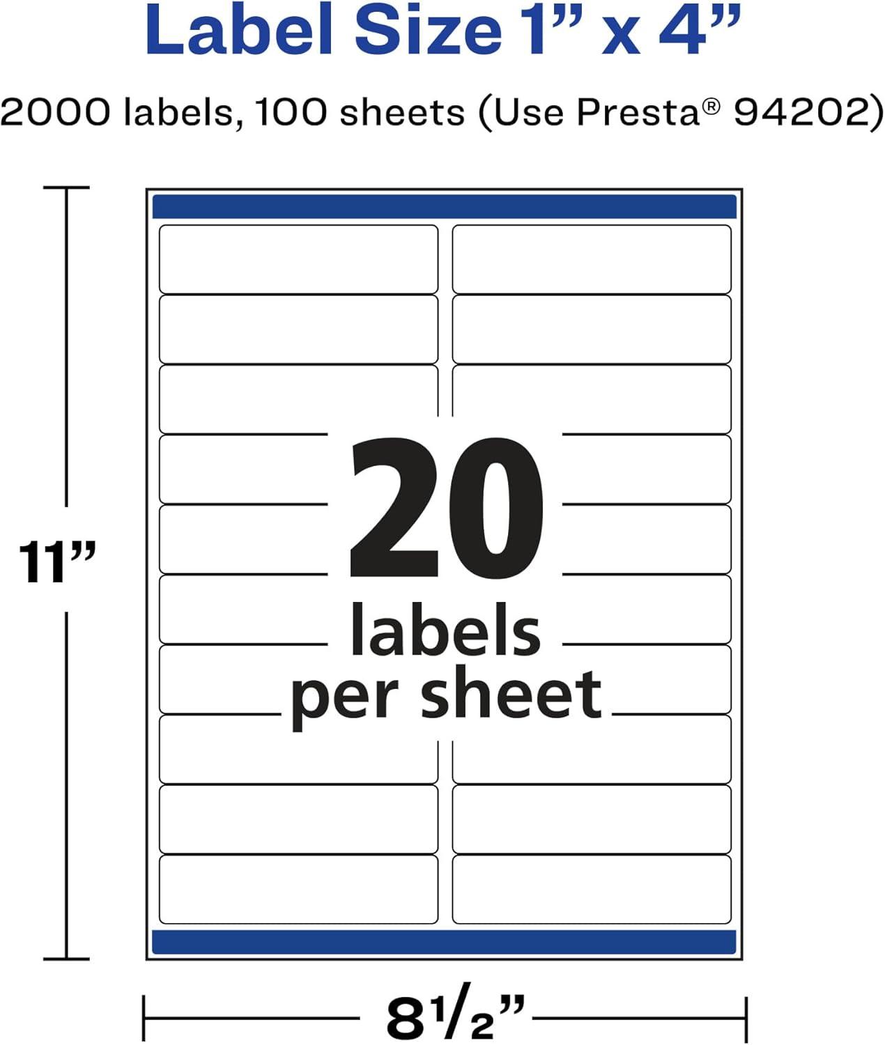 Avery Glossy Clear Rectangle Labels, Sure Feed Technology, 1″ x 4″, 200 Glossy Clear Labels, Laser/Inkjet Printable(2 000 labels)
