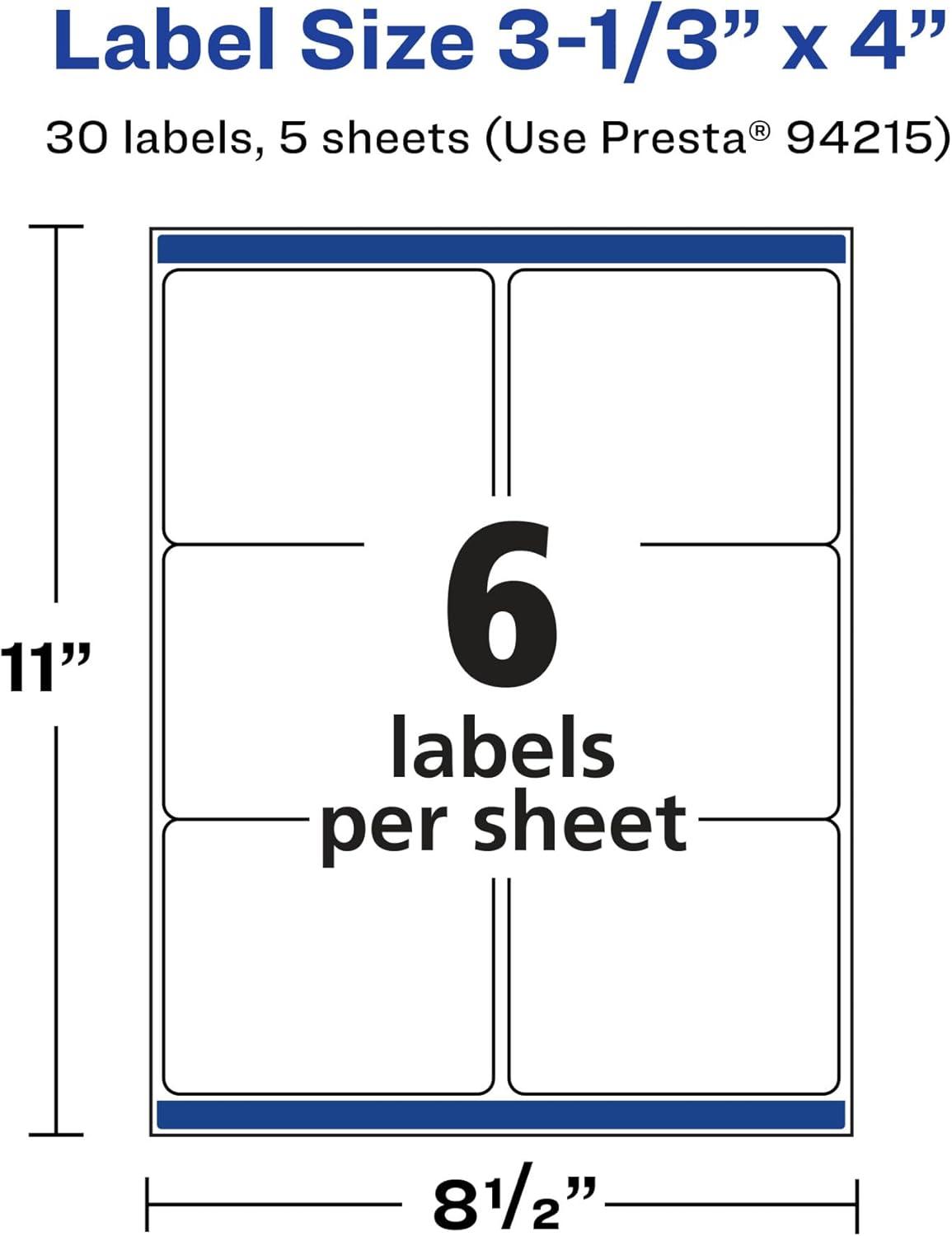 Avery Glossy Clear Rectangle Labels, Sure Feed Technology, 3-1/3″ x 4″, 30 Glossy Clear Labels, Laser/Inkjet Printable(30 labels)