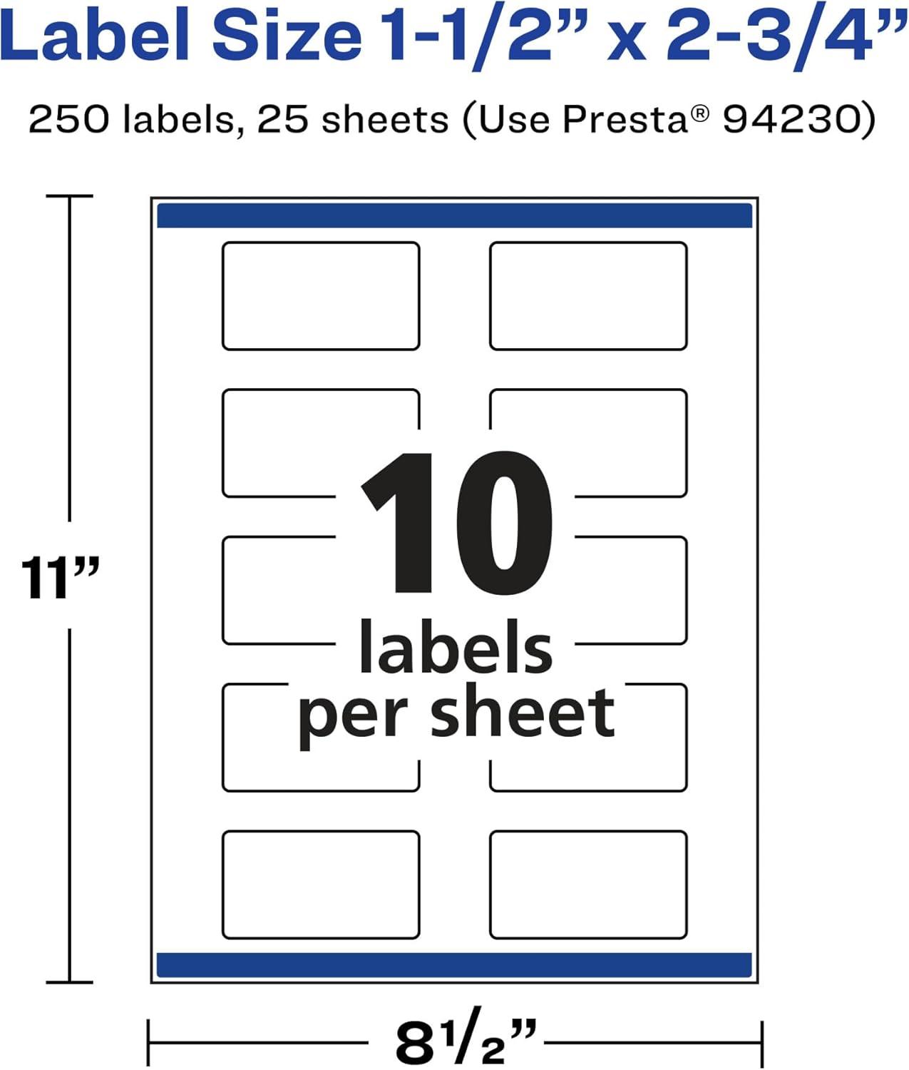Create mailing labels, product labels, labels for food containers, soap labels, candle jar labels, body scrub labels that are absolutely clear with Avery 1.5″ x 2.75″ Glossy Clear rectangle Labels. Clear as glass with a reflective shine, Avery glossy clear labels vanish when applied to glass and metal surfaces. The transparent and glossy label material is also perfect for making the colors in your design pop and look even more vibrant on lighter surfaces. Avery rectangle labels are carefully constructed and developed with patented features to provide the best results for every project. Sure Feed technology prevents jams or smudges by creating a more reliable feed through your printer. The print-to-the-edge layout lets you print beautiful full-bleed designs that fill each blank sticker to the edge. The patented Easy Peel label design makes these labels easy to peel and quick to apply. Just bend the label sheet, peel off your labels and fold the sheet back flat. The strong permanent label adhesive makes sure that your labels stick and stay to a variety of surfaces without peeling, curling or falling off. Easily customize labels with your own designs, art, symbols and messaging by using the label templates and designs on the Avery website. The intuitive tools make it easy to add your personal touch to any project.