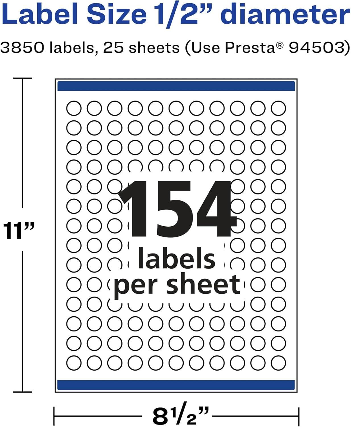 Avery Glossy Clear Round Labels, Sure Feed Technology, 0.5" Diameter, 1,540 Glossy Clear Labels, Print-to-The-Edge, Laser/Inkjet Printable(3 850 labels)