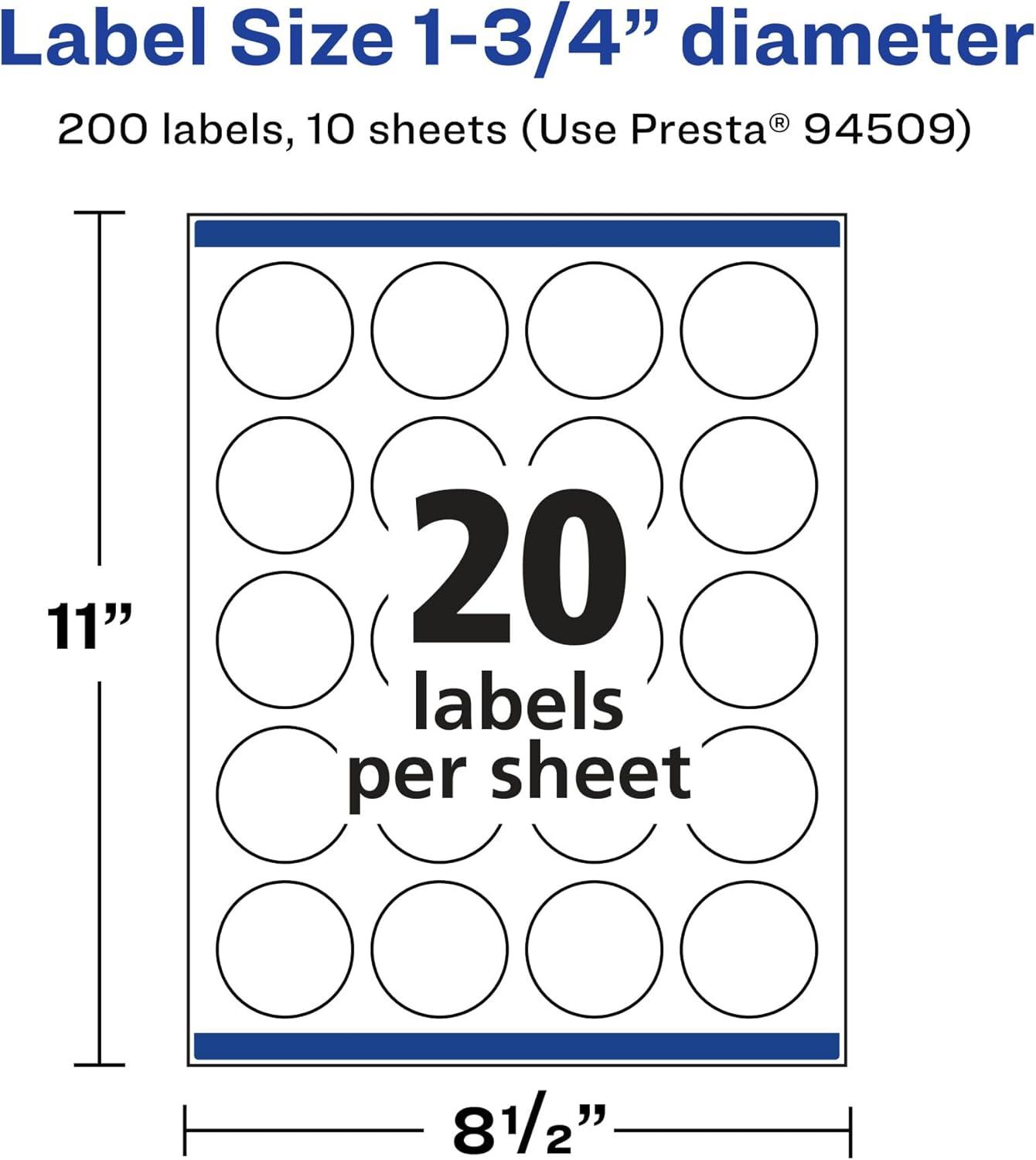 Avery Glossy Clear Round Labels, Sure Feed Technology, 1.75" Diameter, 200 Glossy Clear Labels, Print-to-The-Edge, Laser/Inkjet Printable(200 labels)