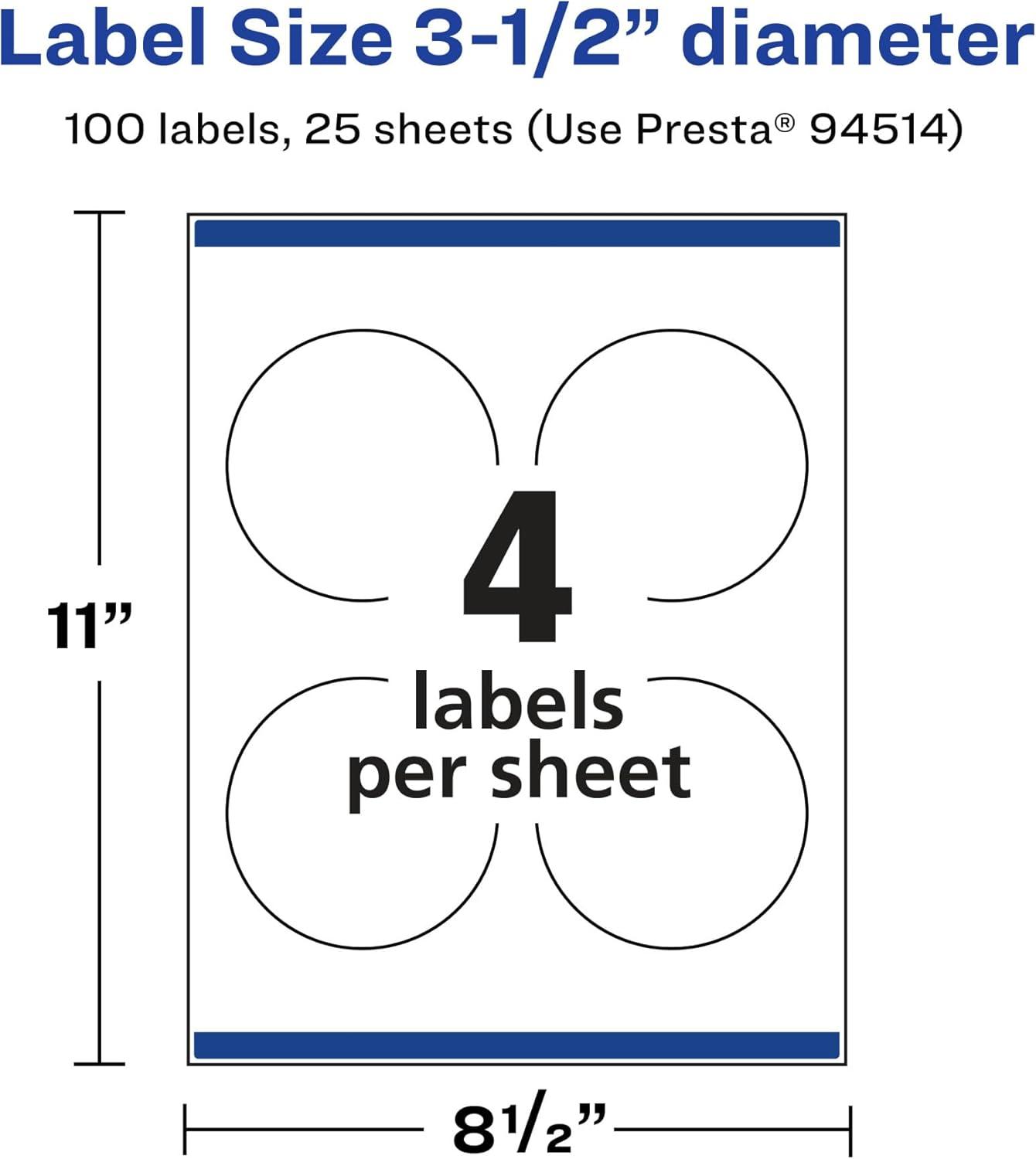 Avery Glossy Clear Round Labels, Sure Feed Technology, 3.5″ Diameter, 40 Glossy Clear Labels, Print-to-The-Edge, Laser/Inkjet Printable(100 labels)