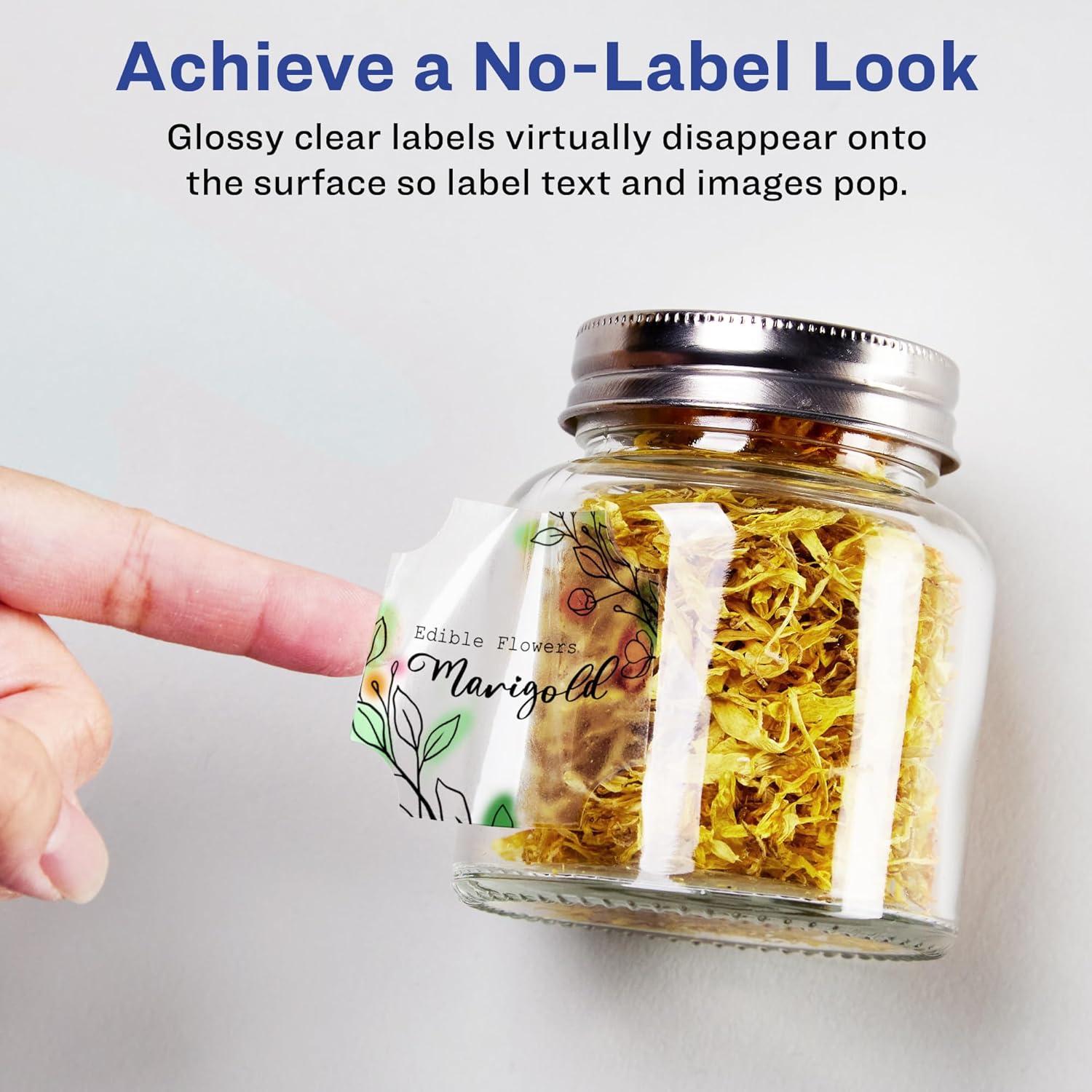 Avery Glossy Clear Square Scalloped Labels, Sure Feed Technology, 1-5/8″ x 1-5/8″, 200 Glossy Clear Labels, Print-to-The-Edge, Laser/Inkjet Printable(500 labels)