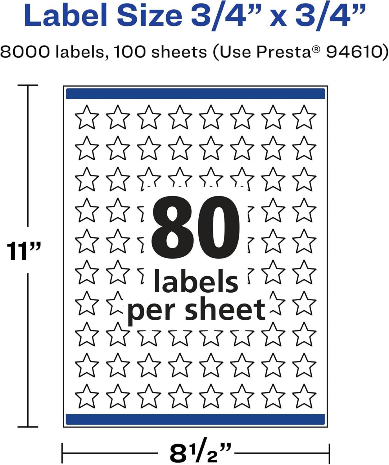 Create reward stickers for kids, teacher reward stickers, decorative labels, pricing stickers, product labels, planner stickers that are absolutely clear with Avery .75″ x .75″ Glossy Clear star Labels. Clear as glass with a reflective shine, Avery glossy clear labels vanish when applied to glass and metal surfaces. The transparent and glossy label material is also perfect for making the colors in your design pop and look even more vibrant on lighter surfaces. Avery star labels are carefully constructed and developed with patented features to provide the best results for every project. Sure Feed technology prevents jams or smudges by creating a more reliable feed through your printer. The print-to-the-edge layout lets you print beautiful full-bleed designs that fill each blank sticker to the edge. The strong permanent label adhesive makes sure that your labels stick and stay to a variety of surfaces without peeling, curling or falling off. Easily customize labels with your own designs, art, symbols and messaging by using the label templates and designs on the Avery website. The intuitive tools make it easy to add your personal touch to any project.