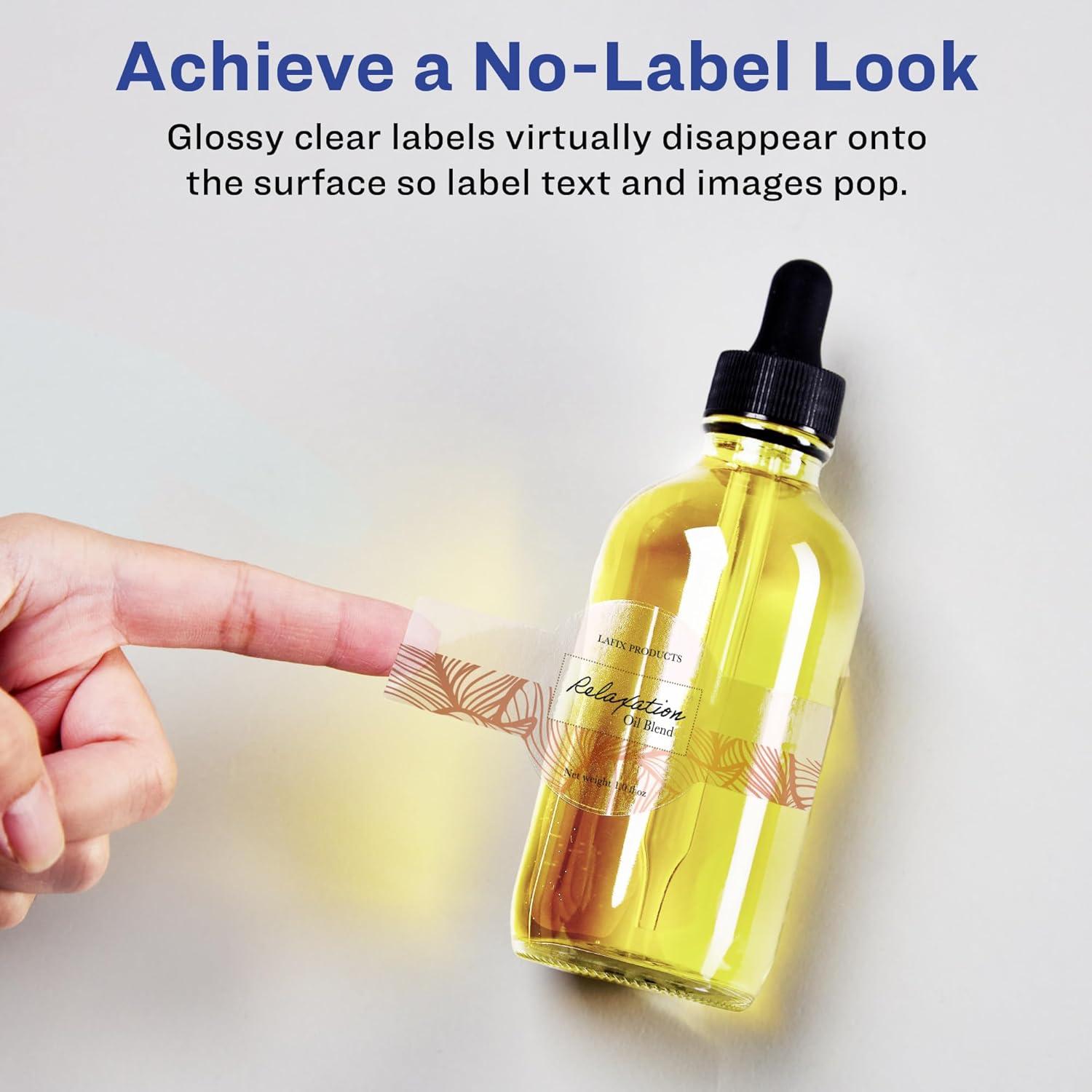 Create cosmetic labels, lotion labels, body scrub labels, mailing seals, tamper-evident labels, bottle labels that are absolutely clear with Avery 1.5″ x 3.5″ Glossy Clear Wraparound Band Labels. Clear as glass with a reflective shine, Avery glossy clear labels vanish when applied to glass and metal surfaces. The transparent and glossy label material is also perfect for making the colors in your design pop and look even more vibrant on lighter surfaces. Avery Wraparound Band Labels are carefully constructed and developed with patented features to provide the best results for every project. Sure Feed technology prevents jams or smudges by creating a more reliable feed through your printer. The print-to-the-edge layout lets you print beautiful full-bleed designs that fill each blank sticker to the edge. The strong permanent label adhesive makes sure that your labels stick and stay to a variety of surfaces without peeling, curling or falling off. Easily customize labels with your own designs, art, symbols and messaging by using the label templates and designs on the Avery website. The intuitive tools make it easy to add your personal touch to any project.
