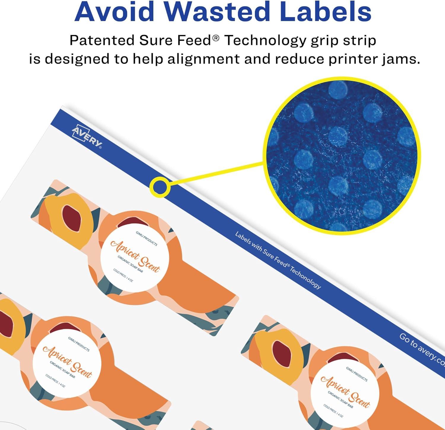 Avery labels with proprietary Sure Feed technology provide a more reliable feed through your printer, preventing misalignments and jams