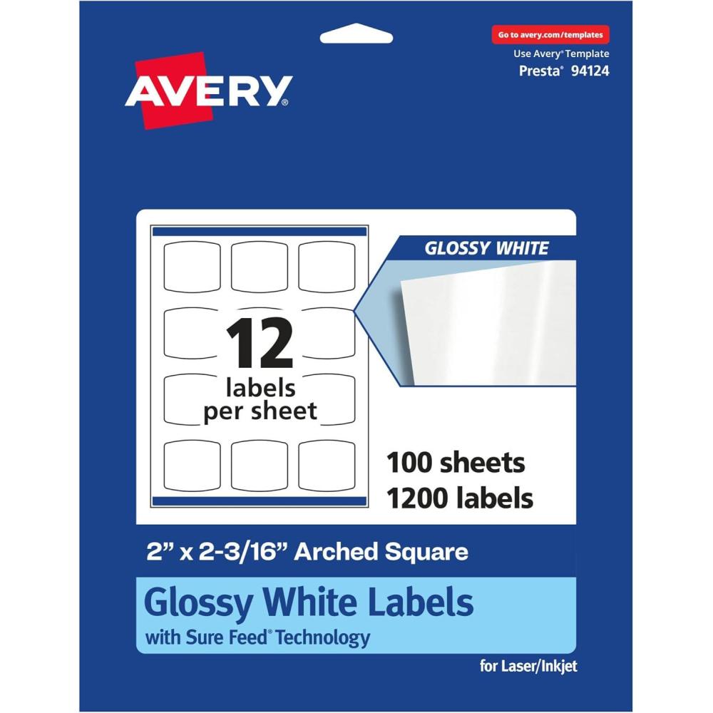 Add a beautiful shine to cosmetic labels, lotion labels, soap labels, perfume labels, jar labels, candle labels, jewelry labels, mailing labels and more with Avery 2″ x 2-3/16″ Glossy White Arched Square Labels. Avery arched square labels are carefully constructed with patented features to provide the best results. Sure Feed technology prevents jams or smudges by creating a more reliable feed through your printer. The print-to-the-edge layout lets you print beautiful full-bleed designs that fill each blank sticker to the edge. These glossy white arched square labels are compatible with both laser and inkjet printers so that you can effortlessly print bold, bright colors and clear, sharp text. The sturdy permanent label adhesive makes sure that your labels stick and stay to a variety of surfaces without peeling, curling or falling off. Easily customize labels with your own designs, art, symbols and messaging by using the free label templates and designs in Avery Design & Print. Whether you're creating product labels for a small business, custom labels for classrooms or professional labels for the office, Avery glossy white labels will add a brilliant and beautiful shine to any project.