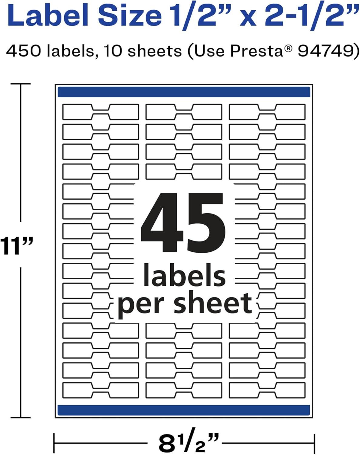 Avery Glossy White Barbell Labels, Sure Feed Technology, 0.5" x 2.5", 450 Glossy White Labels, Permanent Adhesive, Laser/Inkjet Printable(450 labels)