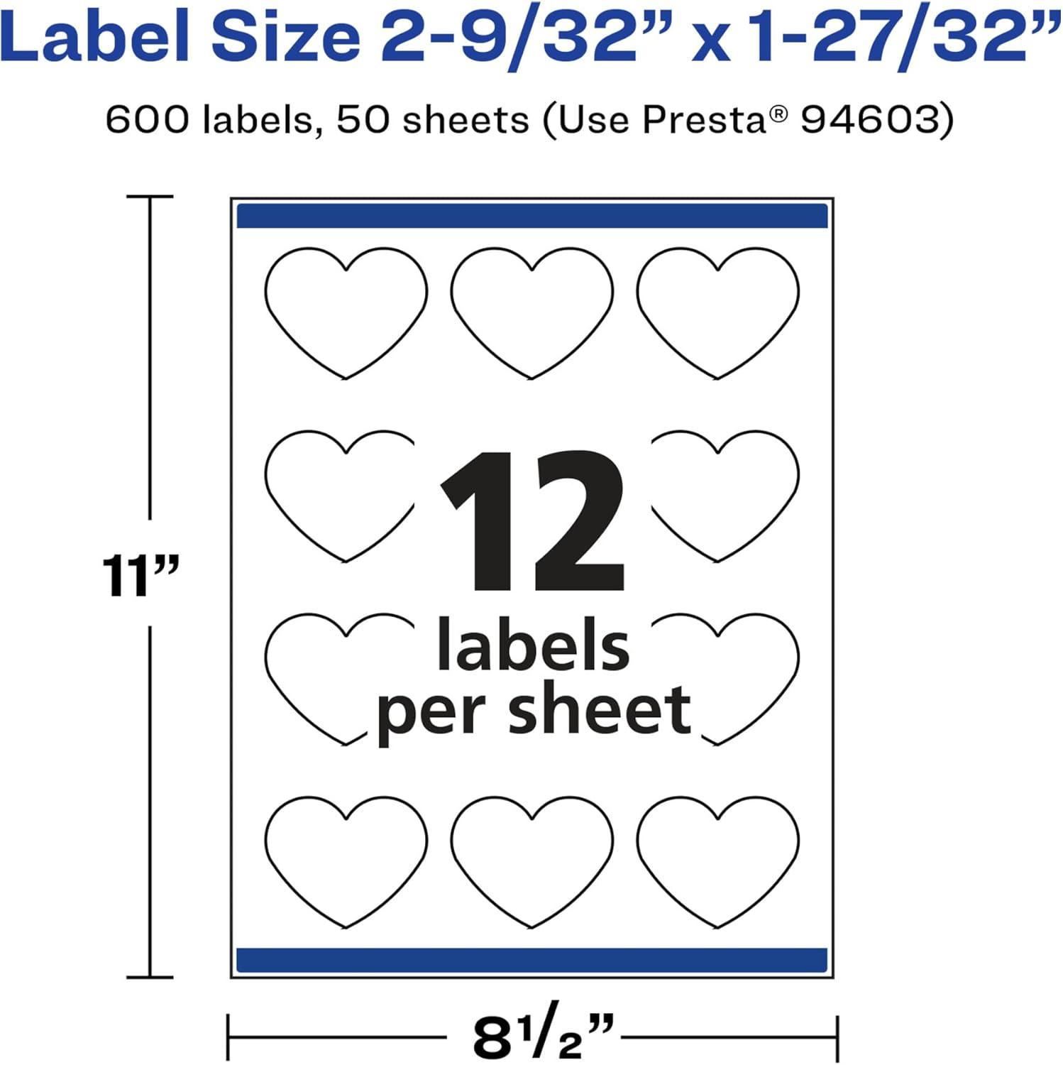 Avery Glossy White Heart Labels, Sure Feed Technology, 2-9/32″ x 1-27/32″, 120 Glossy White Labels, Print-to-The-Edge, Permanent Adhesive, Laser/Inkjet Printable(600 labels)