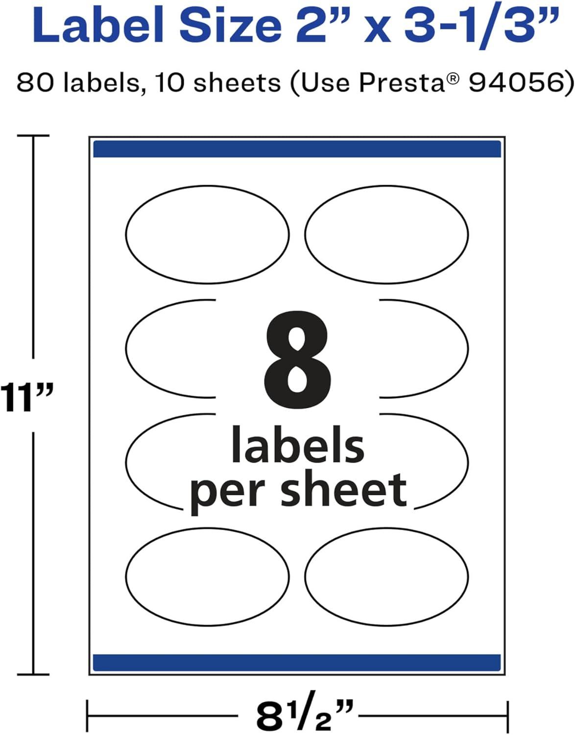 Avery Glossy White Oval Labels, Sure Feed Technology, 2″ x 3-1/3″, 80 Glossy White Labels, Print-to-The-Edge, Permanent Adhesive, Laser/Inkjet Printable(80 labels)