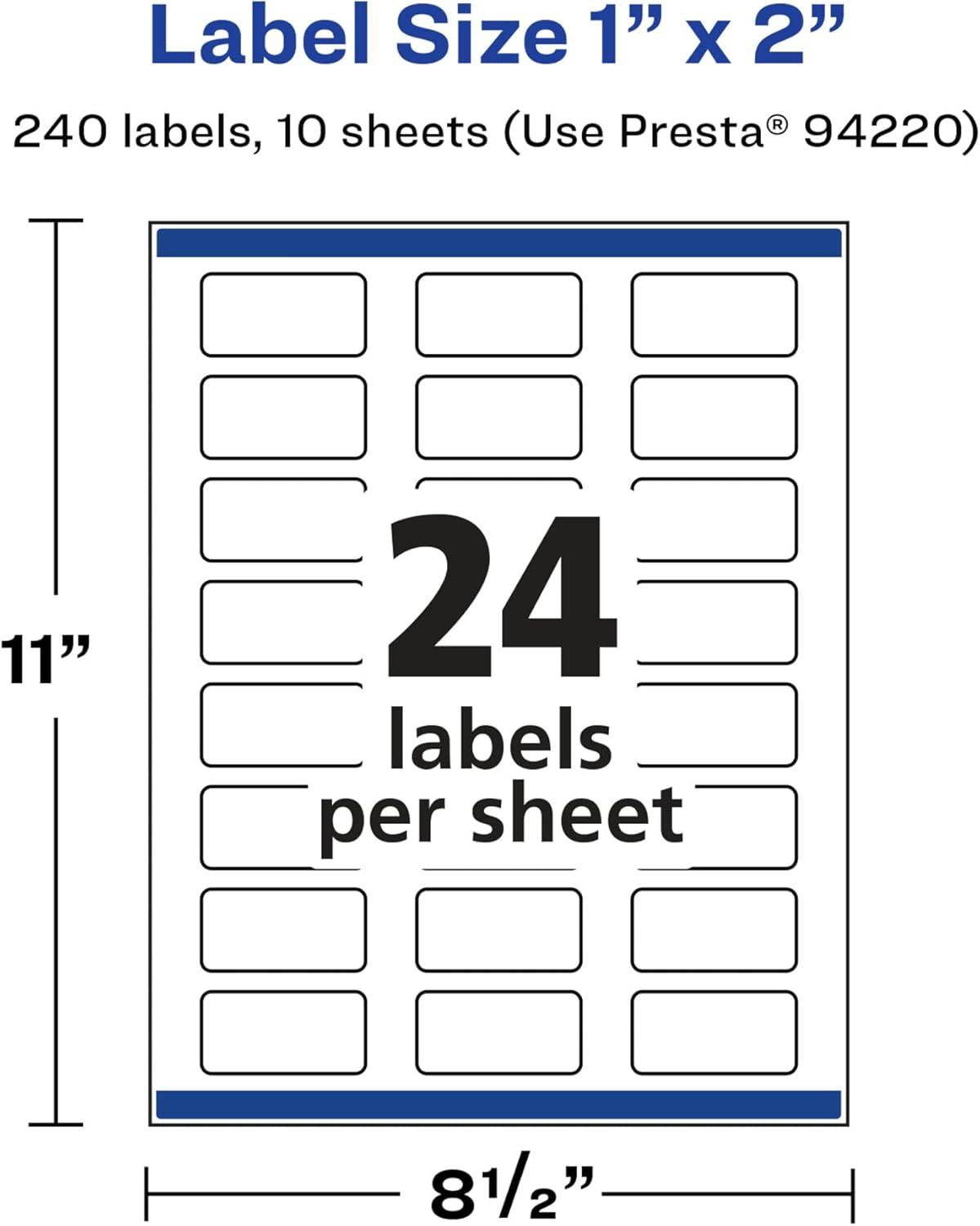 Avery Glossy White Rectangle Labels, Sure Feed Technology, 1″ x 2″, 240 Glossy White Labels, Print-to-The-Edge, Permanent Adhesive, Laser/Inkjet Printable(240 labels)