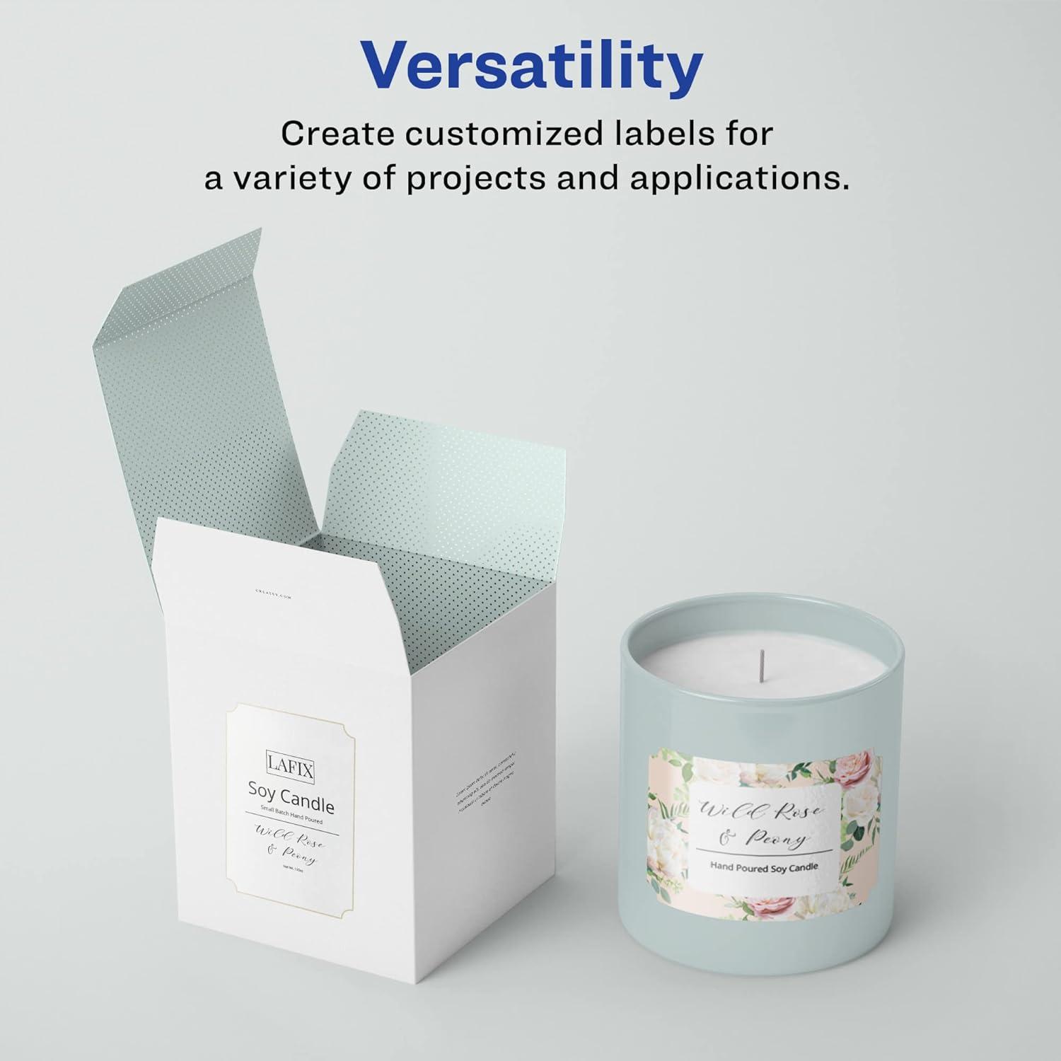 Add a beautiful shine to mailing labels, product labels, labels for food containers, soap labels, candle jar labels, body scrub labels and more with Avery 2″ x 3″ Glossy White Rectangle Scalloped Labels. Avery rectangle scalloped labels are carefully constructed with patented features to provide the best results. Sure Feed technology prevents jams or smudges by creating a more reliable feed through your printer. The print-to-the-edge layout lets you print beautiful full-bleed designs that fill each blank sticker to the edge. These glossy white rectangle scalloped labels are compatible with both laser and inkjet printers so that you can effortlessly print bold, bright colors and clear, sharp text. The sturdy permanent label adhesive makes sure that your labels stick and stay to a variety of surfaces without peeling, curling or falling off. Easily customize labels with your own designs, art, symbols and messaging by using the free label templates and designs in Avery Design & Print. Whether you're creating product labels for a small business, custom labels for classrooms or professional labels for the office, Avery glossy white labels will add a brilliant and beautiful shine to any project.