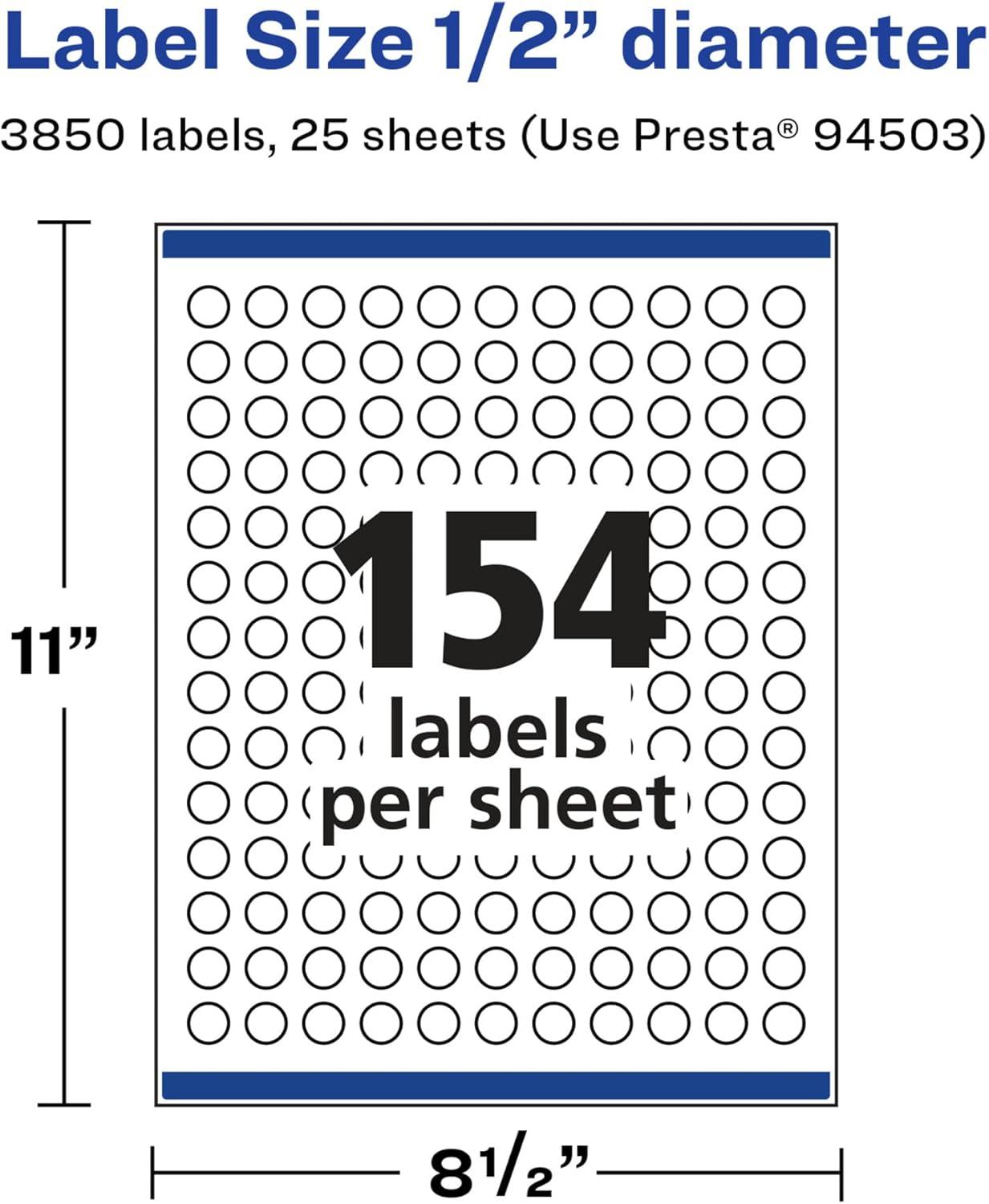 Add a beautiful shine to mailing seals, candle labels, pricing labels, soap labels, product labels, round spice labels, mason jar labels and more with Avery 1/2″ Diameter Glossy White Round Labels. Avery round labels are carefully constructed with patented features to provide the best results. Sure Feed technology prevents jams or smudges by creating a more reliable feed through your printer. The print-to-the-edge layout lets you print beautiful full-bleed designs that fill each blank sticker to the edge. These glossy white round labels are compatible with both laser and inkjet printers so that you can effortlessly print bold, bright colors and clear, sharp text. The sturdy permanent label adhesive makes sure that your labels stick and stay to a variety of surfaces without peeling, curling or falling off. Easily customize labels with your own designs, art, symbols and messaging by using the free label templates and designs in Avery Design & Print. Whether you're creating product labels for a small business, custom labels for classrooms or professional labels for the office, Avery glossy white labels will add a brilliant and beautiful shine to any project.