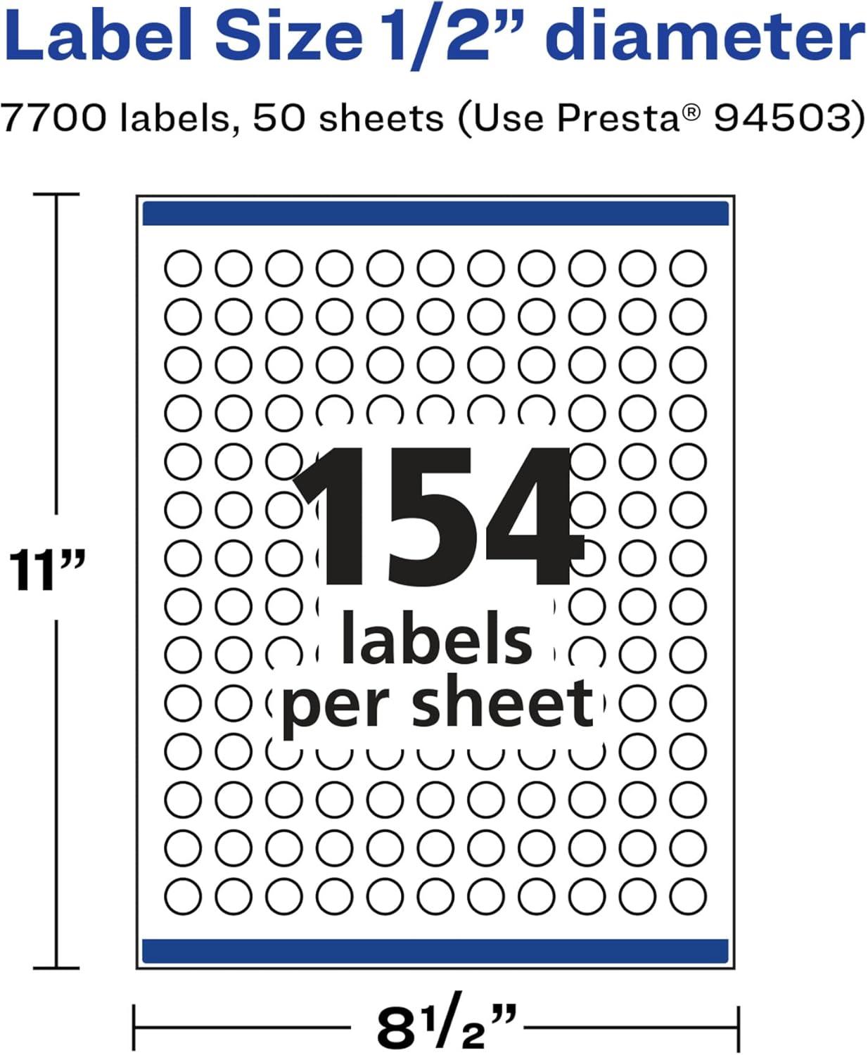 Avery Glossy White Round Labels, Sure Feed Technology, 1/2" Diameter, 1,540 Glossy White Labels, Print-to-The-Edge, Permanent Adhesive, Laser/Inkjet Printable(7 700 labels)