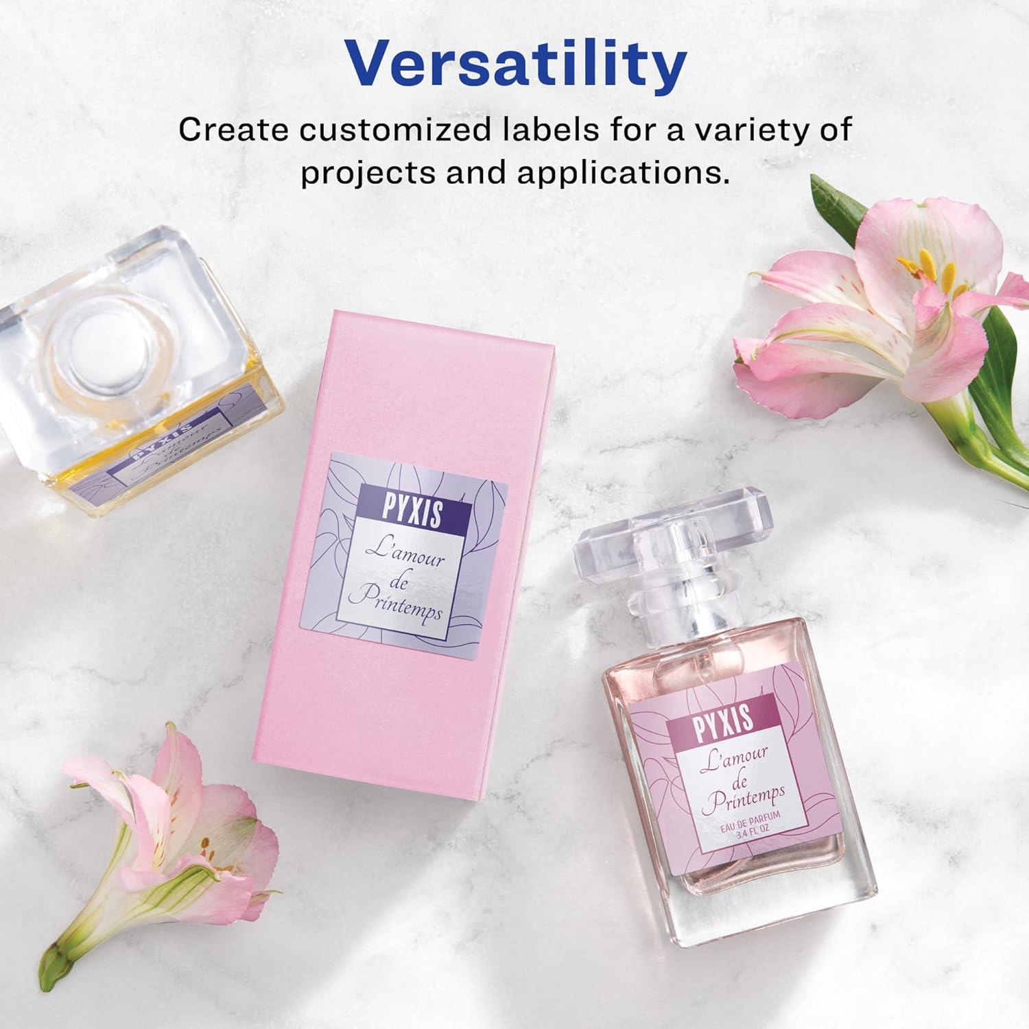 Add a beautiful shine to candle labels, mason jar labels, pricing labels, soap labels, product labels, canning labels, ingredient labels and more with Avery 1.5″ x 1.5″ Glossy White Square Labels. Avery square labels are carefully constructed with patented features to provide the best results. Sure Feed technology prevents jams or smudges by creating a more reliable feed through your printer. The print-to-the-edge layout lets you print beautiful full-bleed designs that fill each blank sticker to the edge. These glossy white square labels are compatible with both laser and inkjet printers so that you can effortlessly print bold, bright colors and clear, sharp text. The sturdy permanent label adhesive makes sure that your labels stick and stay to a variety of surfaces without peeling, curling or falling off. Easily customize labels with your own designs, art, symbols and messaging by using the free label templates and designs in Avery Design & Print. Whether you're creating product labels for a small business, custom labels for classrooms or professional labels for the office, Avery glossy white labels will add a brilliant and beautiful shine to any project.