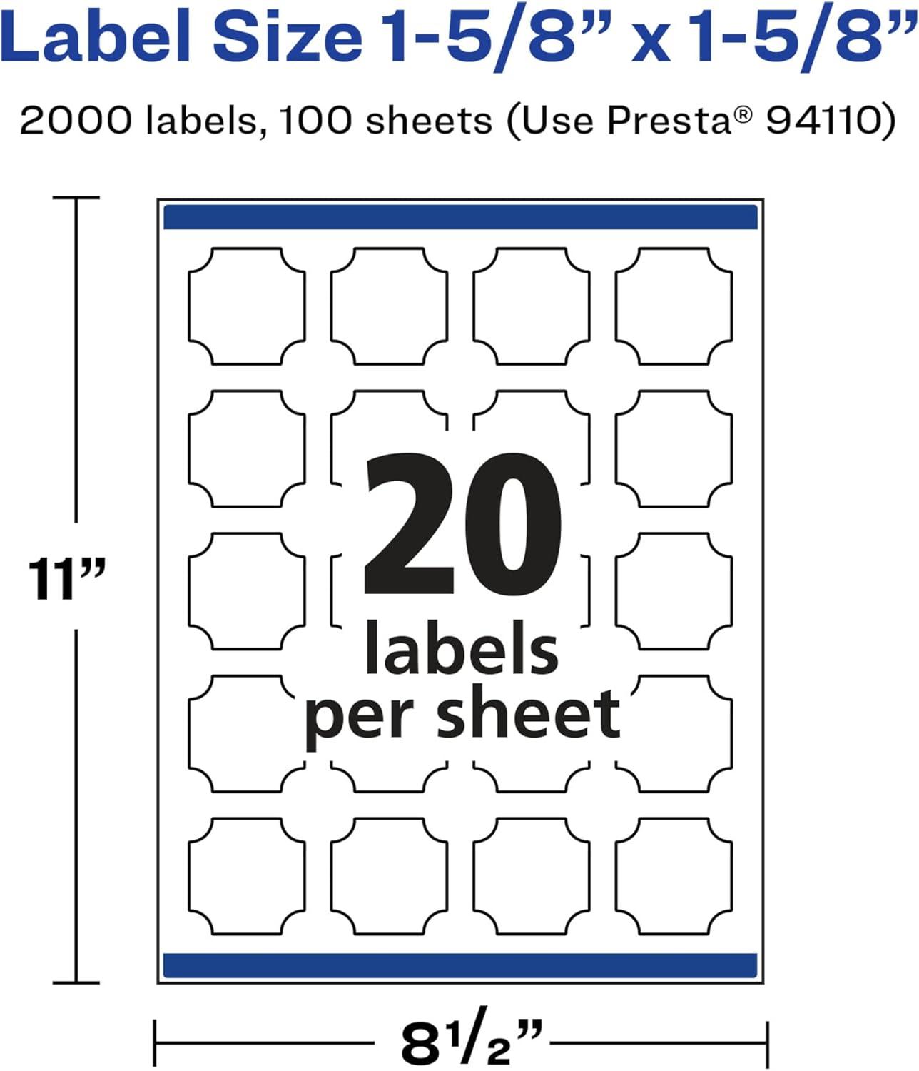 Avery Glossy White Square Scalloped Labels, Sure Feed Technology, 1-5/8" x 1-5/8", 200 Glossy White Labels, Print-to-The-Edge, Permanent Adhesive, Laser/Inkjet Printable(2 000 labels)