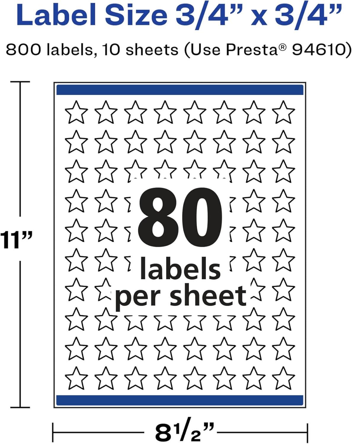 Add a beautiful shine to reward stickers for kids, teacher reward stickers, decorative labels, pricing stickers, product labels, planner stickers and more with Avery 3/4″ x 3/4″ Glossy White Star Labels. Avery star labels are carefully constructed with patented features to provide the best results. Sure Feed technology prevents jams or smudges by creating a more reliable feed through your printer. The print-to-the-edge layout lets you print beautiful full-bleed designs that fill each blank sticker to the edge. These glossy white star labels are compatible with both laser and inkjet printers so that you can effortlessly print bold, bright colors and clear, sharp text. The sturdy permanent label adhesive makes sure that your labels stick and stay to a variety of surfaces without peeling, curling or falling off. Easily customize labels with your own designs, art, symbols and messaging by using the free label templates and designs in Avery Design & Print. Whether you're creating product labels for a small business, custom labels for classrooms or professional labels for the office, Avery glossy white labels will add a brilliant and beautiful shine to any project.