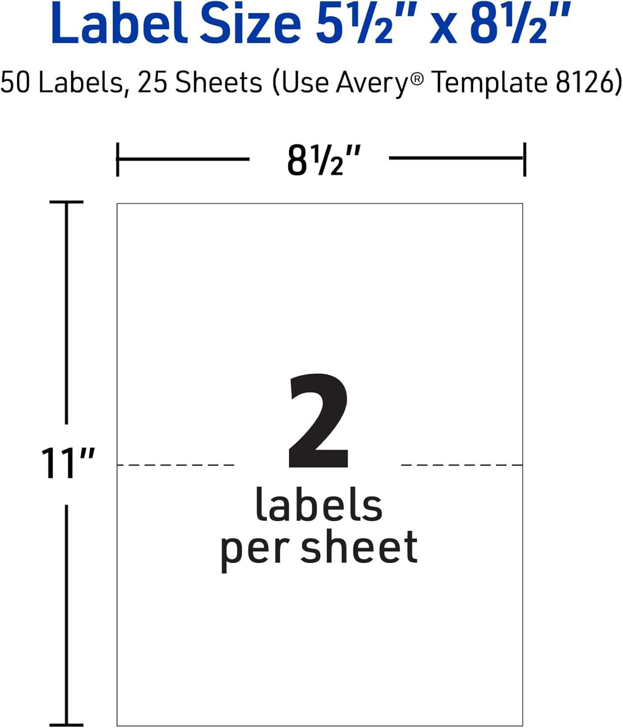 Avery Half-Sheet Printable Shipping Labels, 5.5" x 8.5" Customizable Stickers, White, 50 per Pack, 100 Blank Mailing Labels Total, Great for Mailing, Shipping, Organizing, and More (2-Pack of 8126)(5-1/2 in. X 8-1/2 in.)