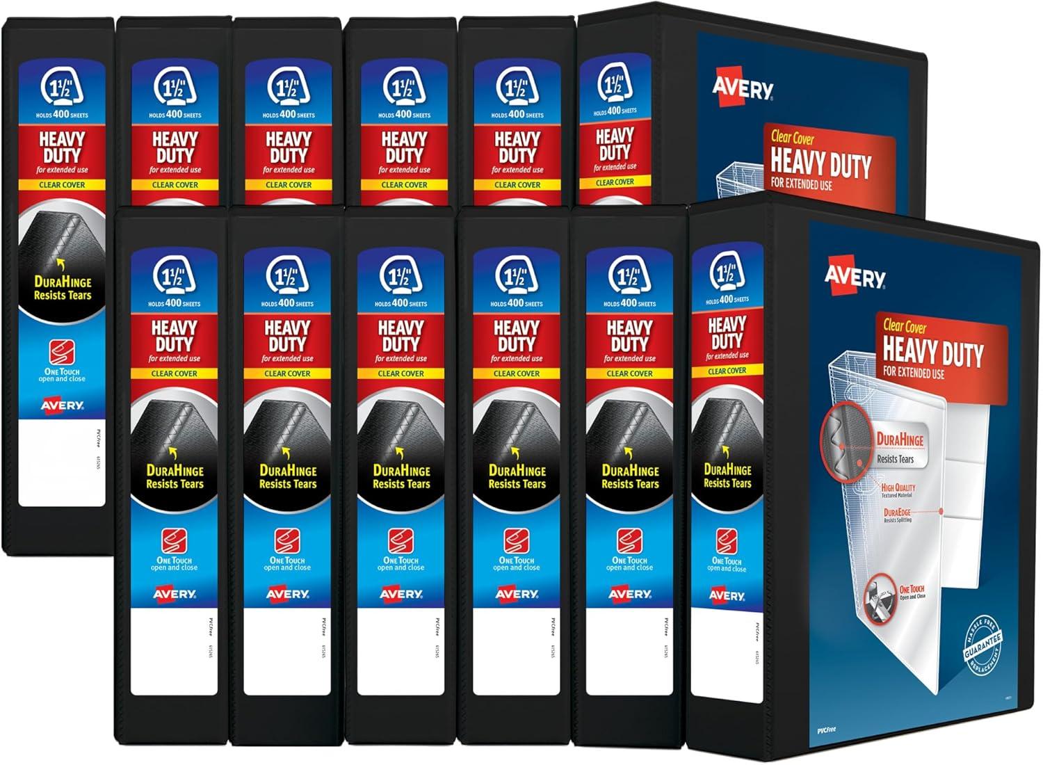 Avery Heavy-Duty 1.5 Inch Binders 3 Ring, View Binder, 1.5 Inch EZD Ring, Black, Sturdy (79695)(1.5")