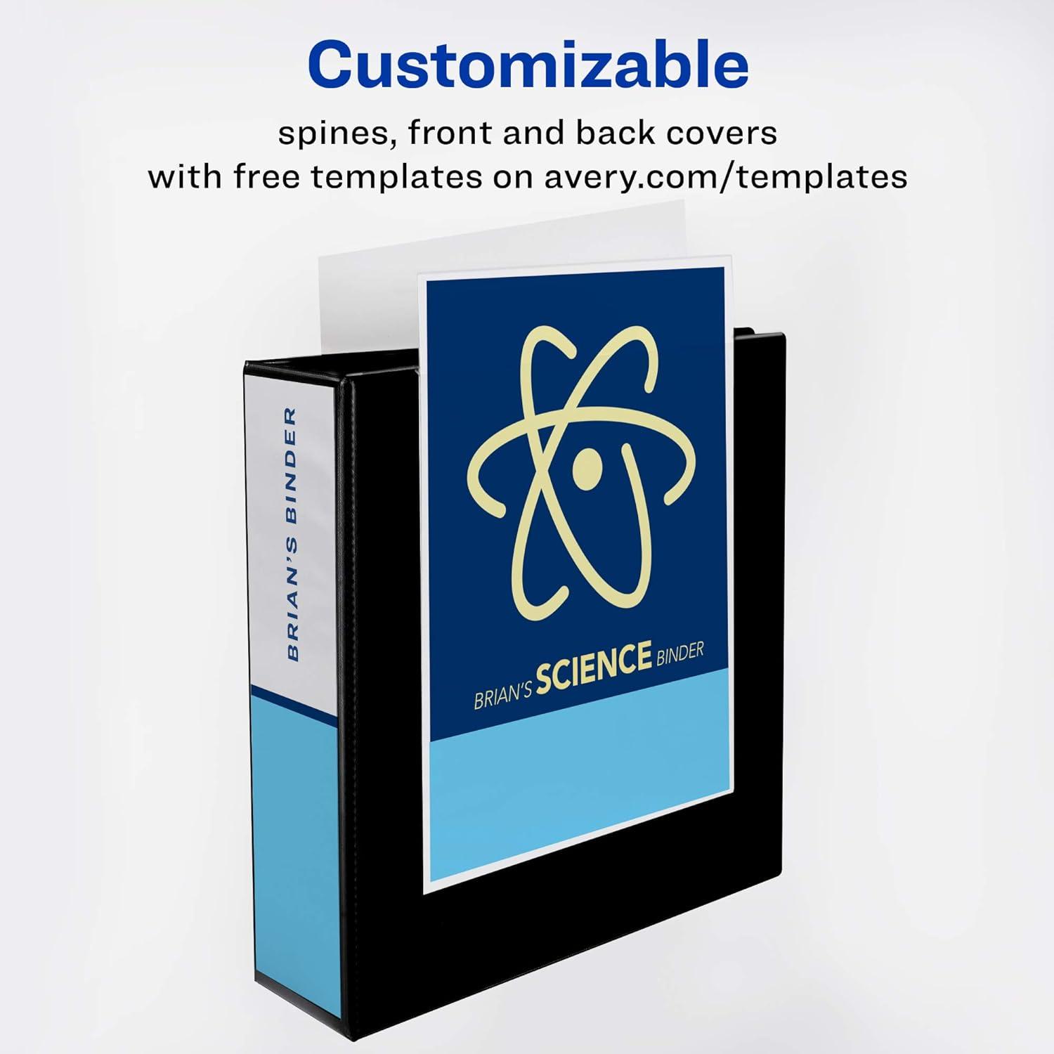 Avery Heavy-Duty 1.5 Inch Binders 3 Ring, View Binder, 1.5 Inch EZD Ring, Black, Sturdy (79695)(3″ (Pack of 4))