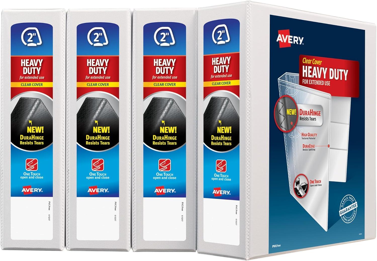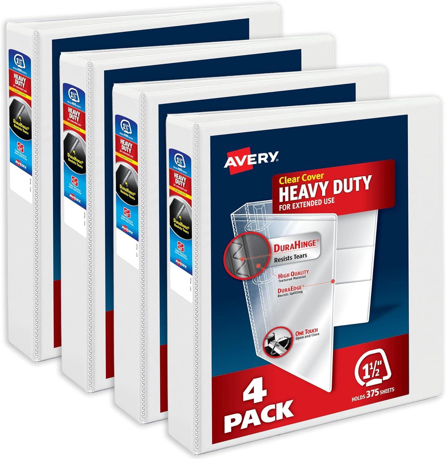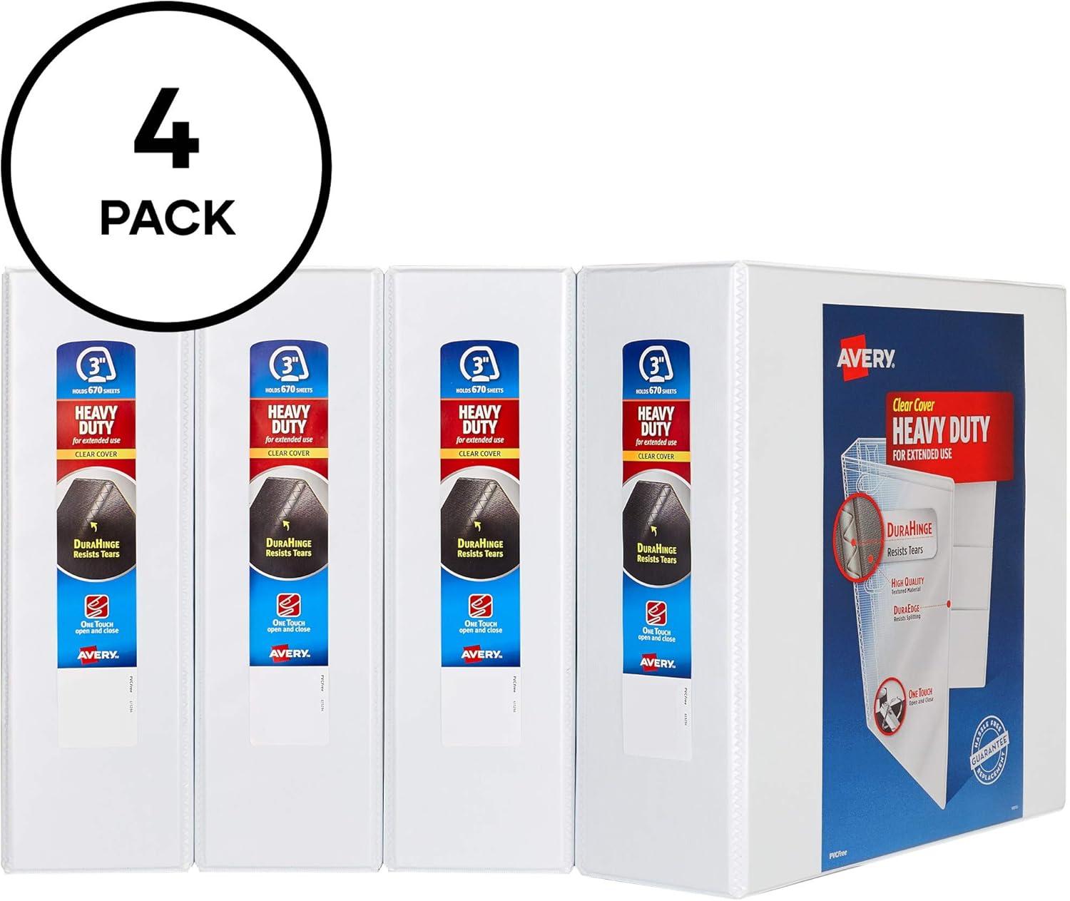 Avery Heavy Duty View 3 Ring Binder, 0.5″ One Touch Slant Ring, Holds 8.5″ x 11″ Paper, 4 White Binders (79709)(4 pack)
