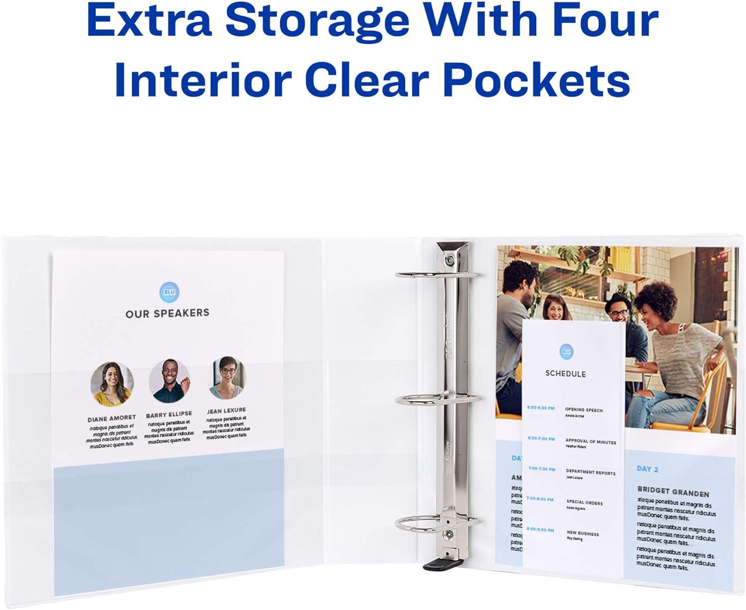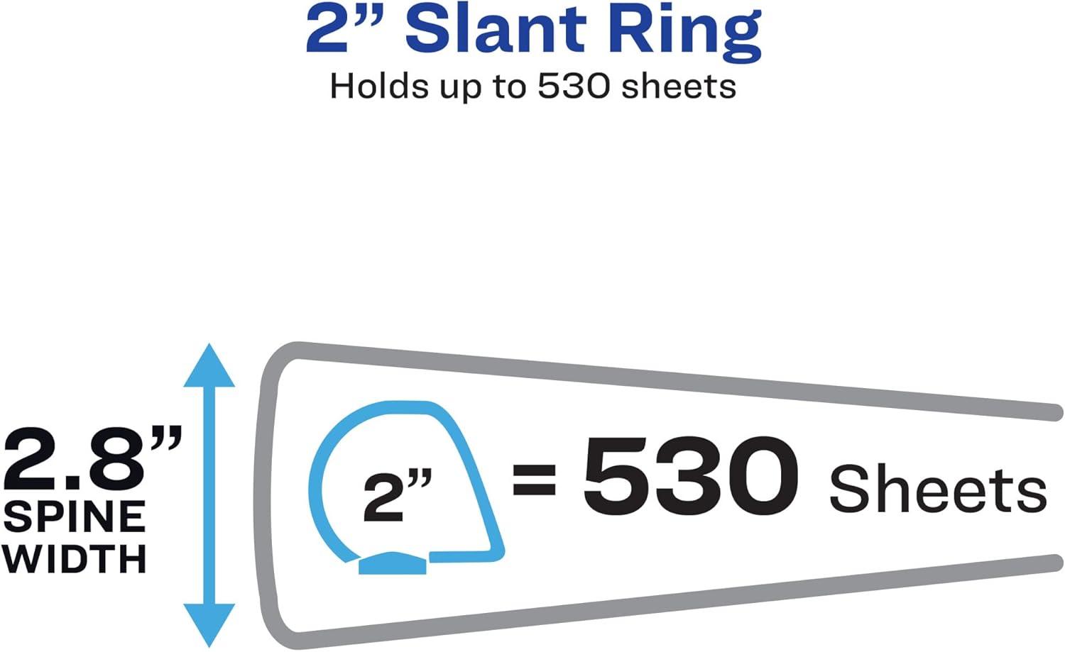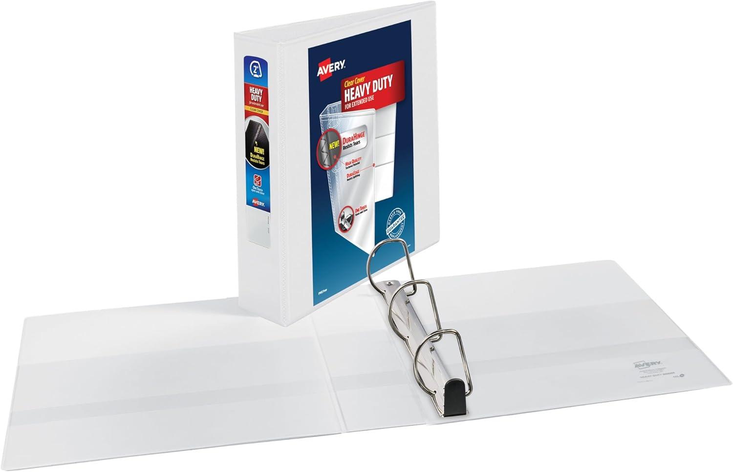 If you're looking for a binder that is stronger, lasts longer, and can hang tough with even the most demanding activities, look no further than the Avery Heavy Duty 0.5-inch binder in white. Its sturdy exterior features a tear-resistant spine (DuraHinge) and more flexible, split-resistant edges (DuraEdge). Heavy Duty binders are also fully adhered with a deep-weave polypropylene cover that is resistant to bubbling, surface wrinkles, and is tear-resistant. The interior of this binder is just as impressive as its exterior. With back-mounted slant rings, your pages will never curl again. Pages lay flat and are easy to turn, while the cover opens and closes without pulling on your papers. The One Touch slant rings keep pages secure and open with ease at the touch of a button. Enjoy extra organization and storage capabilities with four interior clear pockets made of nonstick material that won't lift or transfer ink from your documents. Heavy Duty binders are ideal for activities that require heavy referencing. Great for students of all ages and can withstand the rigorous daily demands of a school binder. Heavy Duty binders can also be used as a recipe binder, music binder, photo album, scrapbook and more. For those who collect trading cards like Pokémon or Yu-Gi-Oh, pair this binder with Avery's Trading Card Storage Sheets for effortless organization. Each binder holds up to 135 sheets of paper with 0.5 inch capacity slant rings. Rings are standard 3-hole spaced and accommodate 8.5″ x 11″ pages nicely. A wider front and back binder panel also ensure that standard dividers and sheet protectors are fully covered—a must for students. All Heavy Duty binders are made with PVC-free material. Personalize your view binder using the free templates, fonts, and designs at avery.com/templates.
