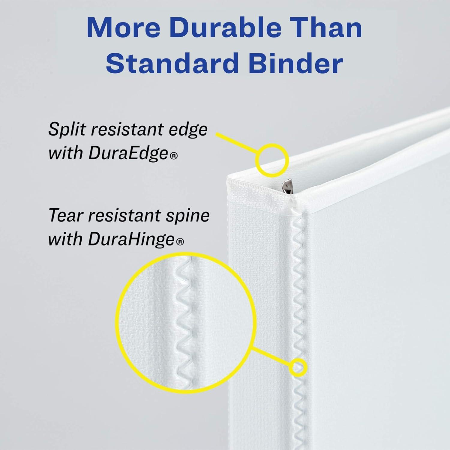 Designed to be stronger and more durable than basic binders, these 4 white heavy-duty binders feature a tear-resistant spine (DuraHinge) and more flexible, split-resistant edges (DuraEdge)